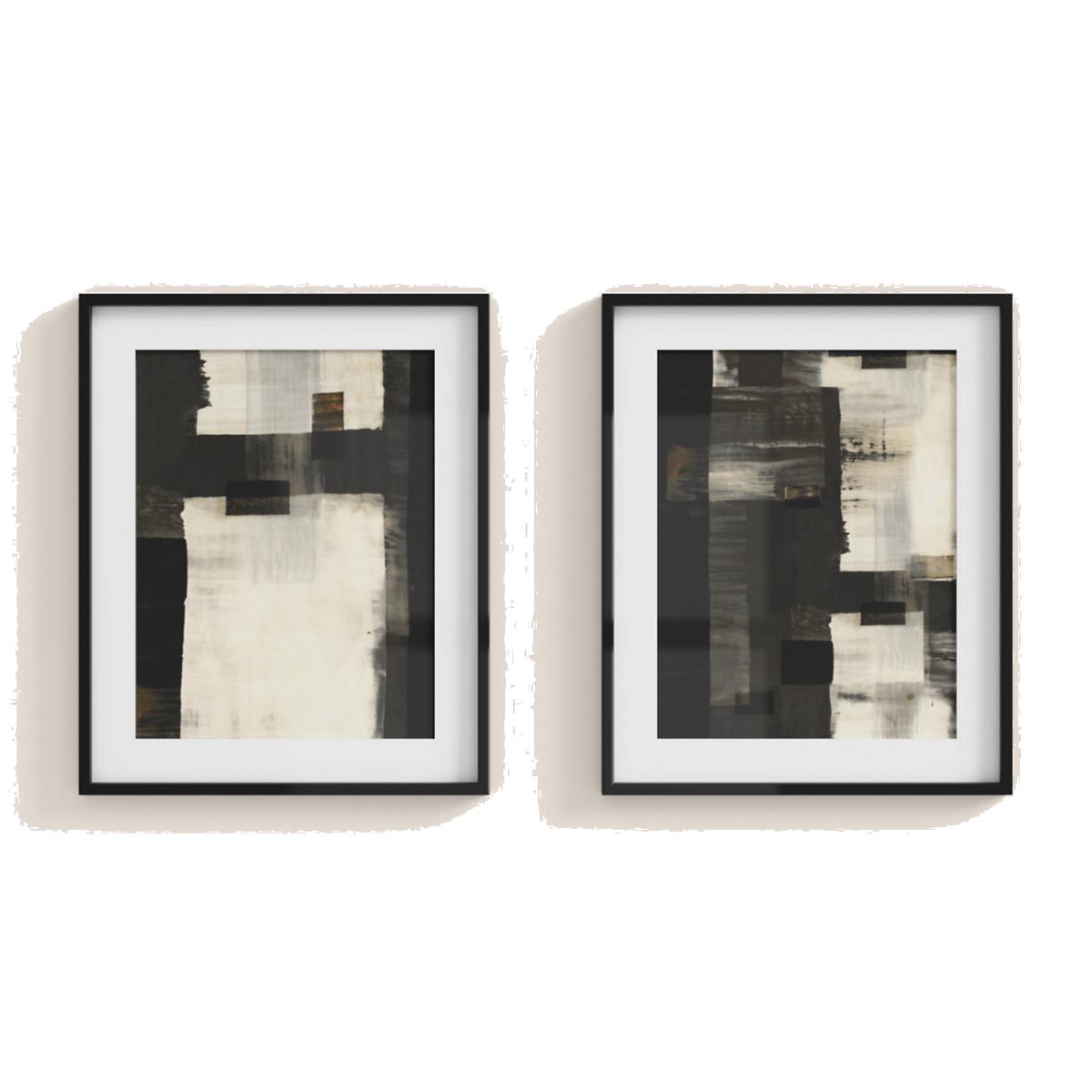 This set of two monochrome framed art pieces is a fantastic way to introduce modern, minimalist style to any space. I love the bold black and white palette, which makes them versatile enough to work in various interiors - from contemporary to industrial or even pared-back Scandi schemes. For styling, consider hanging them together with a little space between, creating a cohesive focal point, or spread them apart over a sideboard or mantle to add visual interest. Their abstract nature means they lend themselves well to both collaborative and solo displays, making them easy to adapt as your decor evolves. Practical tips include pairing them with sleek black or white frames for a clean look or mixing with textured elements like matte ceramics or natural woods to add warmth. Overall, these prints are a stylish, understated choice that can really elevate your walls.