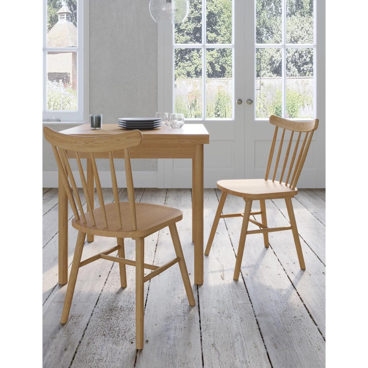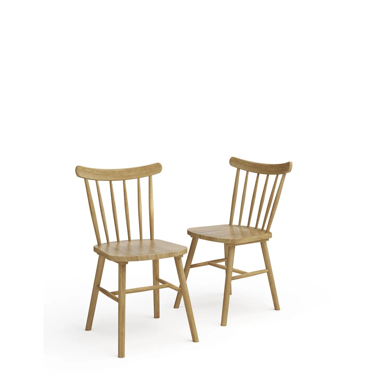 A traditional spindle shape meets modern minimal detailing with this set of two Newark dining chairs. Angled, smooth legs and slender back spindles create an elegant look. They're made from solid oak, with a natural grained finish that brings a subtle earthiness to your interior. Matching pieces from our Newark range are available. We’re so confident our furniture is built to last, our industry-leading guarantee covers any manufacturing failure on all furniture. That’s our promise, and why our furniture comes with a 10-year guarantee that you can trust. Excludes: outdoor furniture and any issues that are a result of normal wear and tear, improper care or accidental damage.