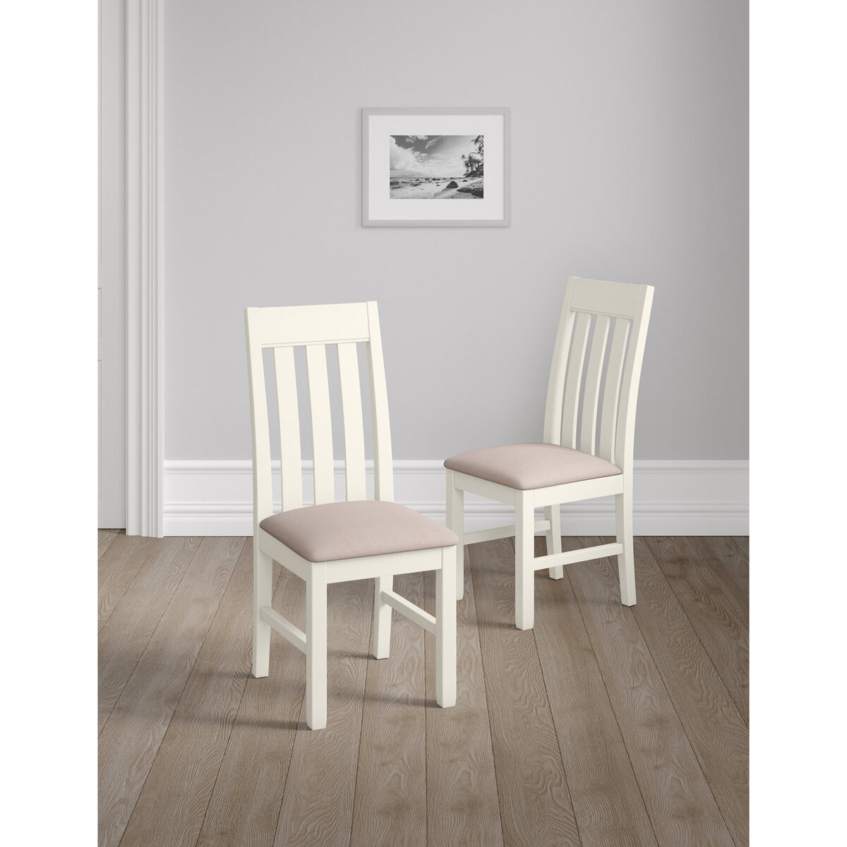 Choose these effortlessly stylish Padstow dining chairs to bring subtle rustic charm to your home. Simply designed, with a perfectly painted finish and a matching cushioned seat, they will complement any colour scheme. Match with other items from the Padstow range.