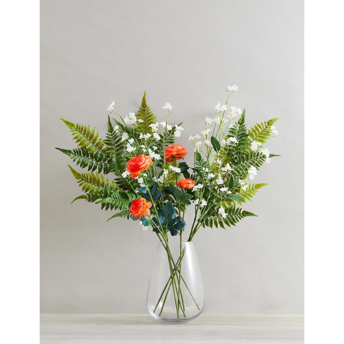 I really like this set of artificial ranunculus stems because of their vibrant colour palette, which makes them versatile for a variety of interior styles. The orange adds a pop of warmth to neutral or minimalist schemes, while the pale pink offers a softer, romantic touch. These stems work particularly well in open shelves, centrepieces, or as part of a mixed arrangement in a vase on the dining or coffee table. My tip would be to group them with other faux greenery or contrasting textures for a fuller look without the maintenance. They’re also a great choice for spaces with limited natural light or high traffic areas, as they’ll stay looking fresh and colourful without needing watering or sunlight.