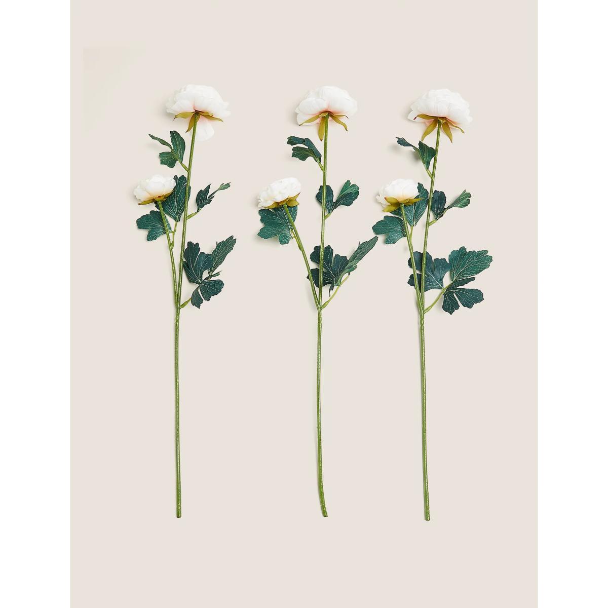 M&S Set of 3 Artificial Ranunculus Single Stems - Orange, Orange,Pale Pink