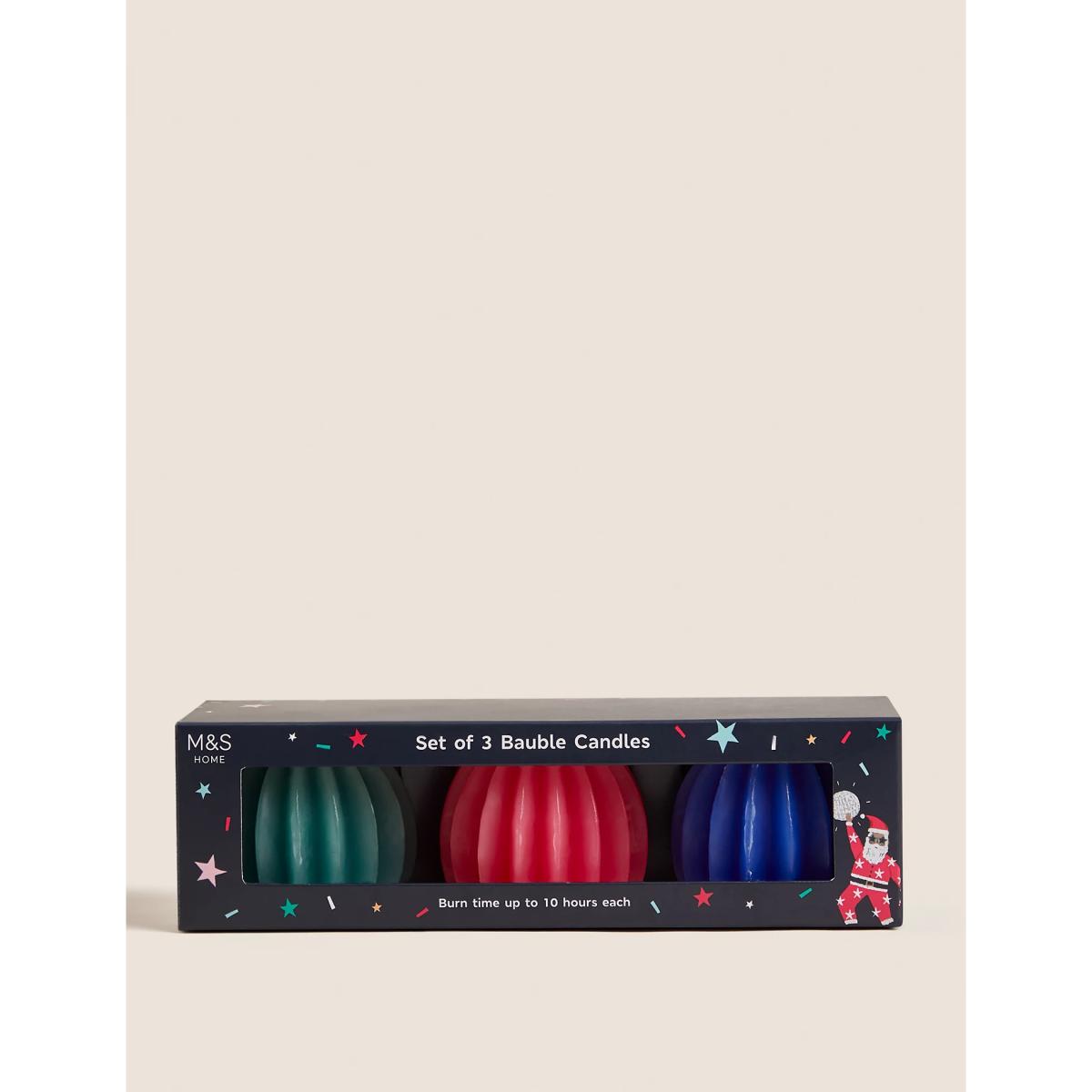 M&S Set of 3 Bauble Candles - Multi, Multi