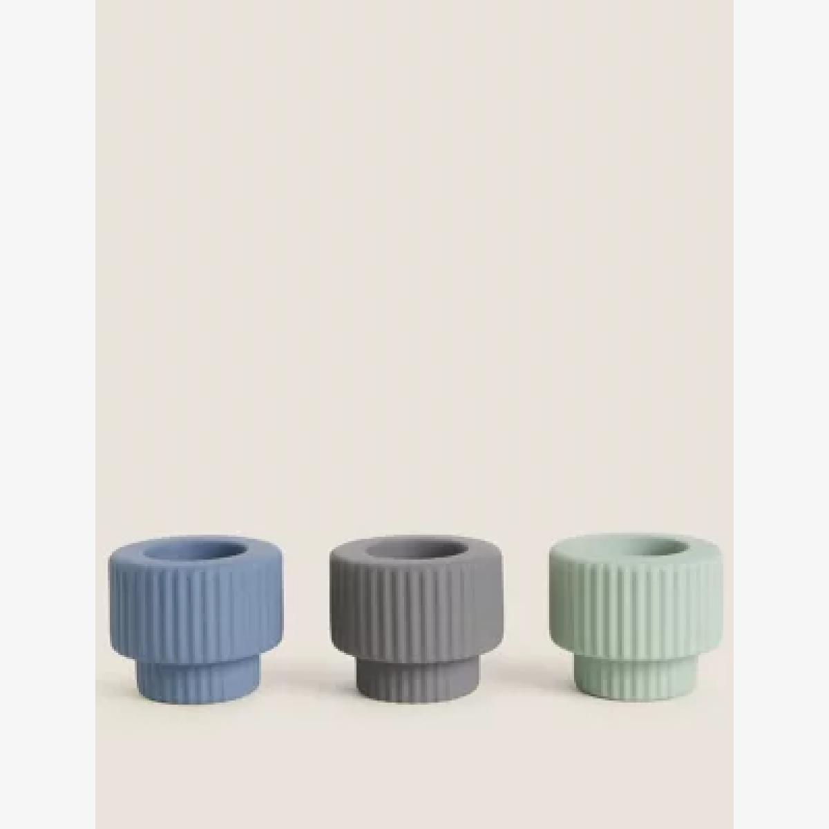 M&S Set of 3 Ridged Tealight Holders - Multi, Multi