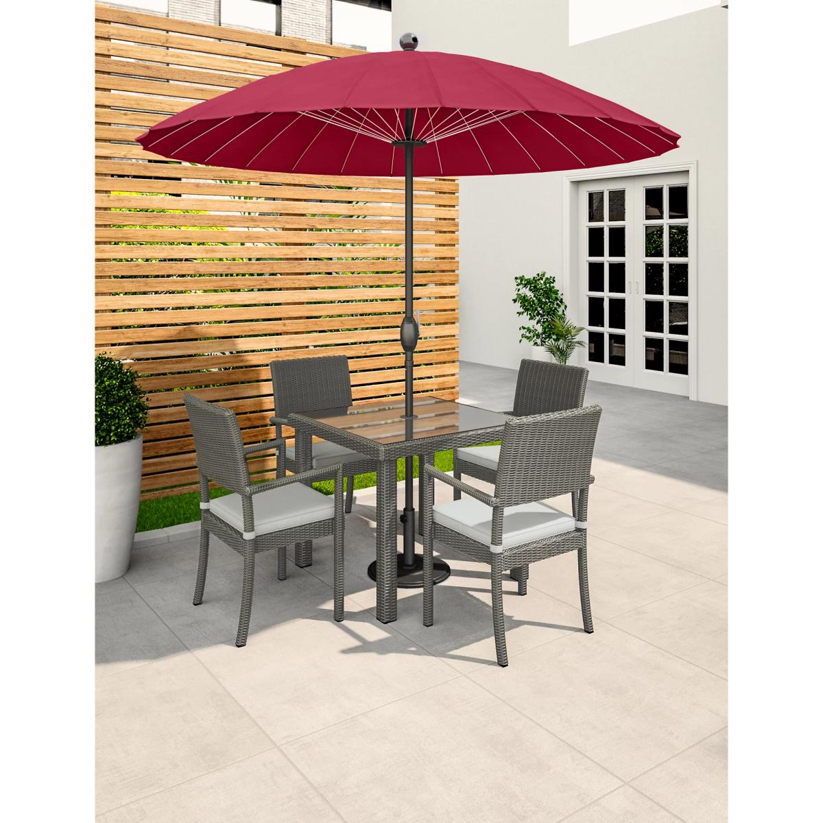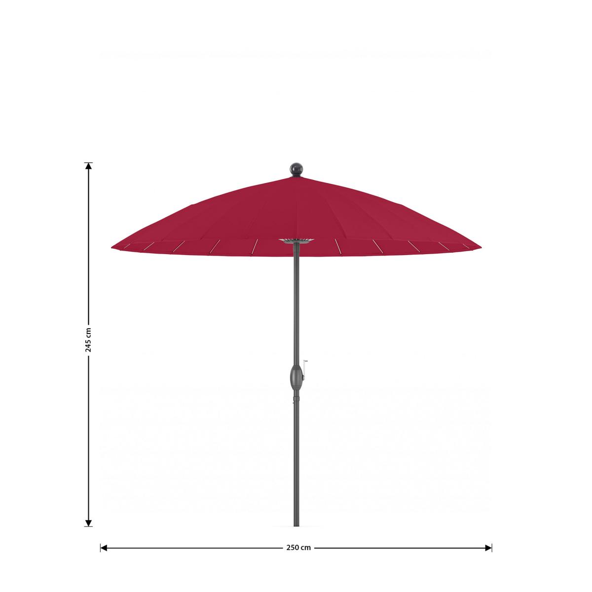 A gorgeous Chinese-inspired design means this stunning garden parasol looks just as charming up as it does down. With a neat circular canopy in a chic range of colours, multiple ribs give a striking shape and contrast that make for a beautiful drape when this sun umbrella is lowered. Offering UPF50+ protection from UV rays, this is the essential garden parasol for those who want just as much style as substance about their summer outdoor accessories.