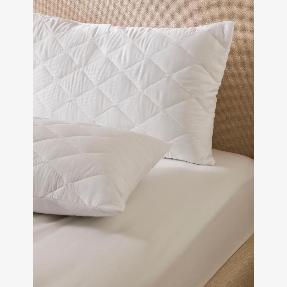 This pillow protector helps your pillows to last longer. Offering added comfort and support, this machine washable protector keeps your pillow fresh and clean.