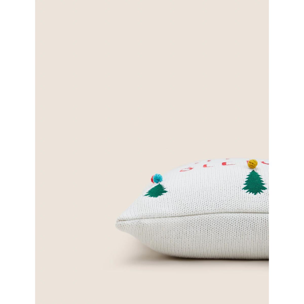 M&S Sleigh Slogan Cushion - Cream Mix, Cream Mix
