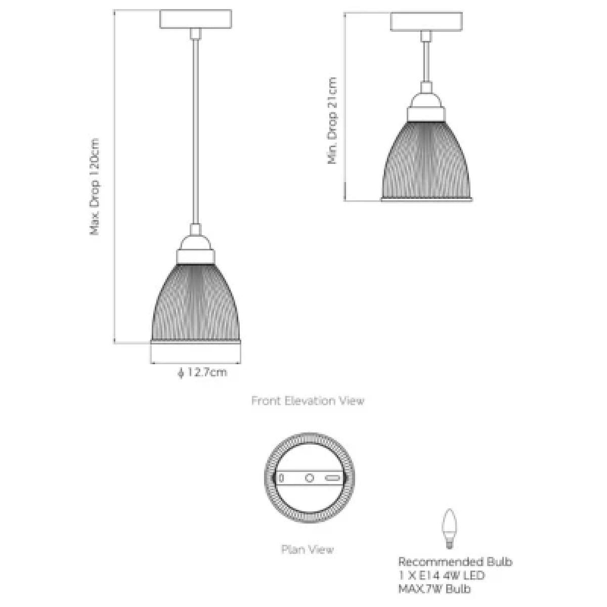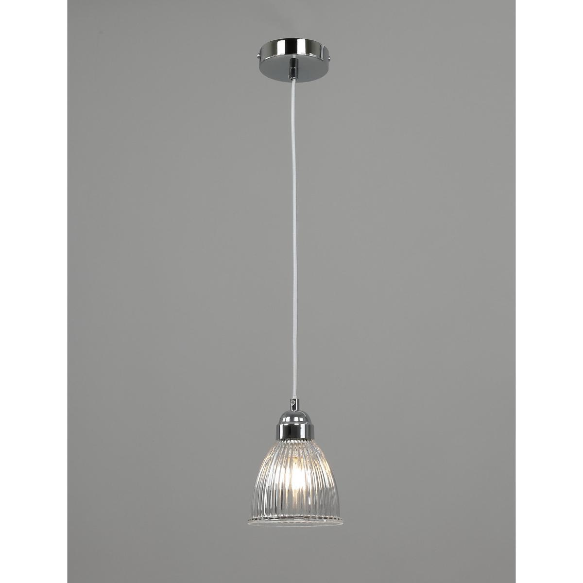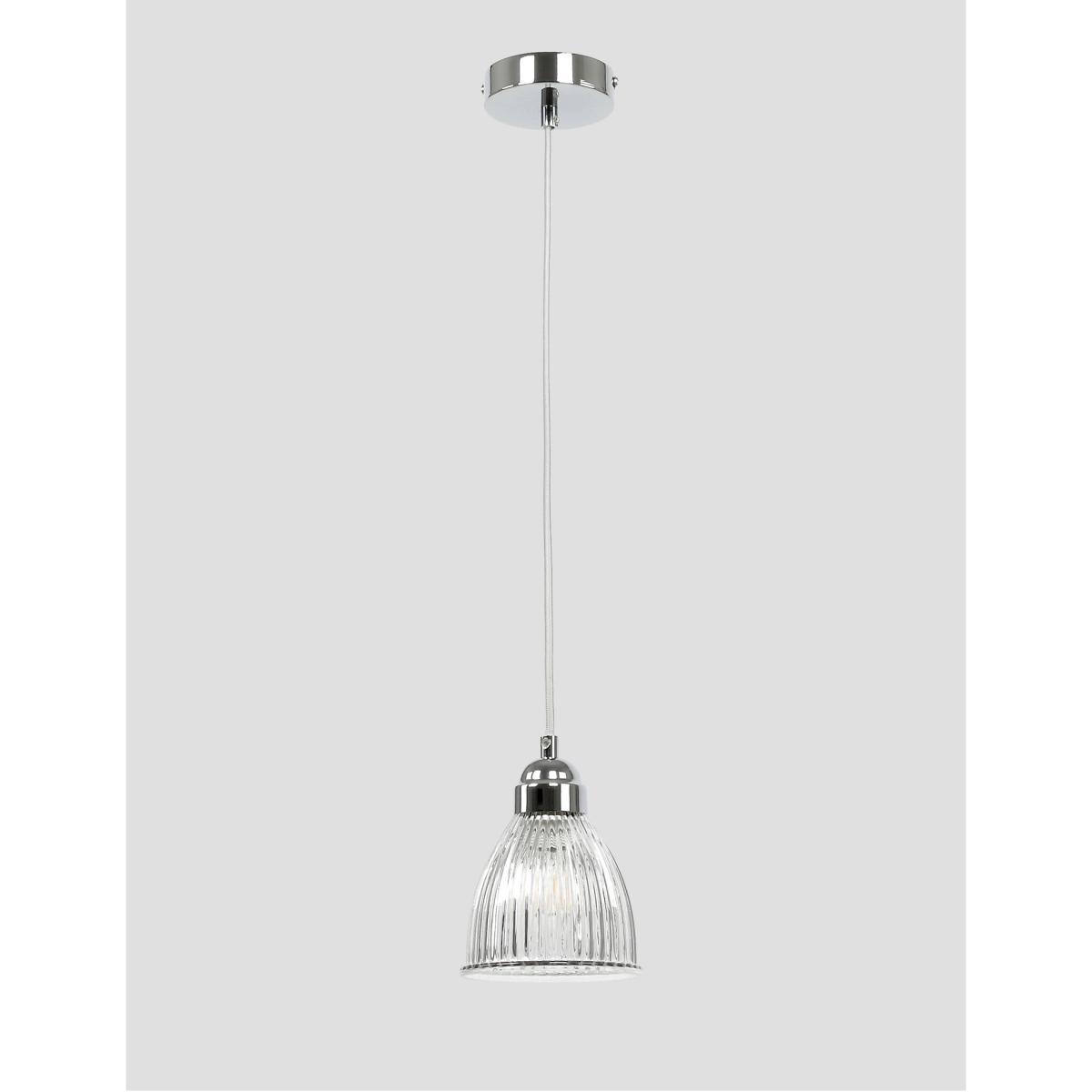 Brighten up your living space with this timeless mini pendant light. The stylish ribbed glass shade hangs from a threaded cable for an industrial aesthetic. Take your pick between sleek polished nickel or antique brass for the fittings and ceiling rose. Other items from the Florence collection are available for a coordinated interior.