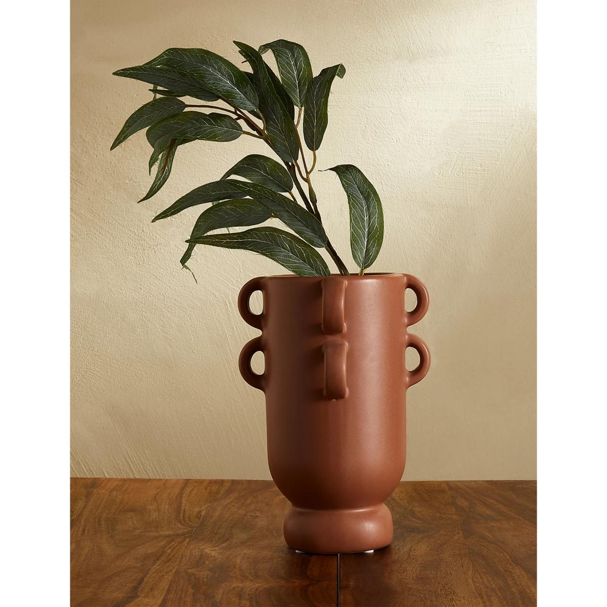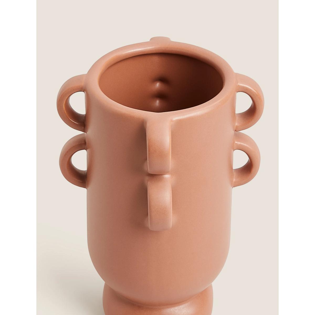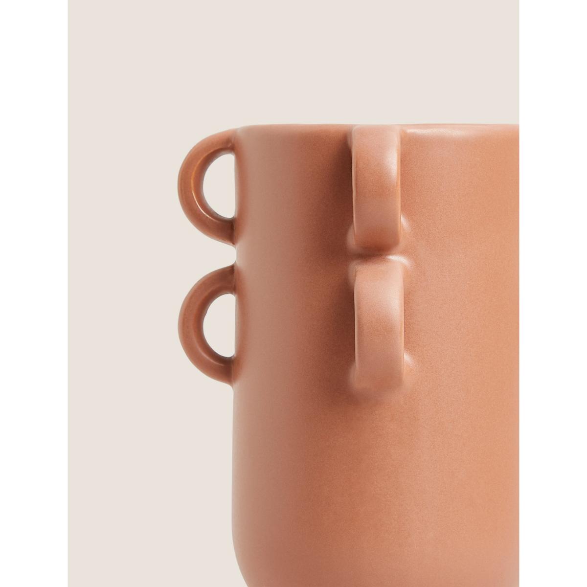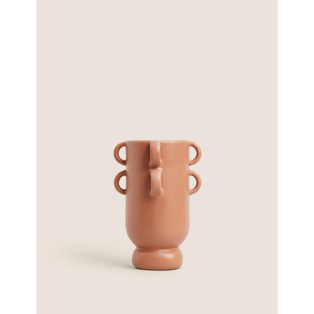 Whether it's standing on its own or used to display your favourite flowers, this ceramic vase is an elegant piece. The small cylindrical design features decorative handles all around for a striking and practical look and is glazed for durability.