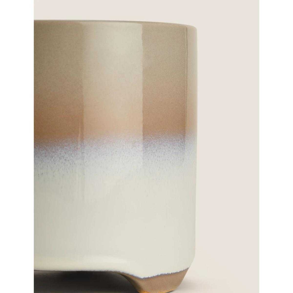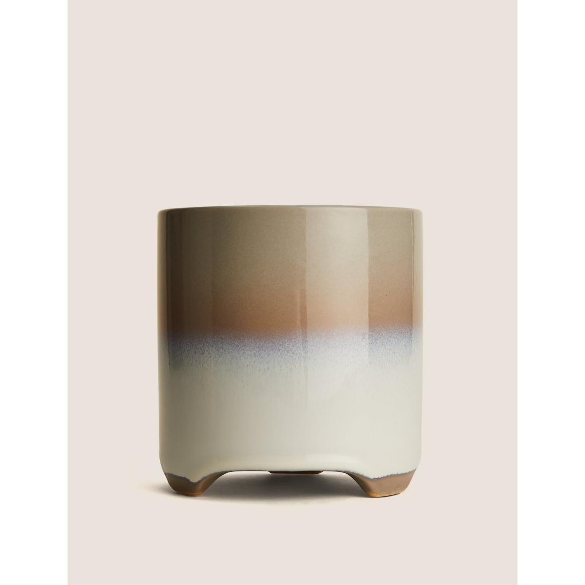 Give your plants a stylish home with this compact but perfectly formed ceramic planter. The reactive glaze creates a variegated finish, with each piece unique. It's raised on three feet to save your surface from marking.