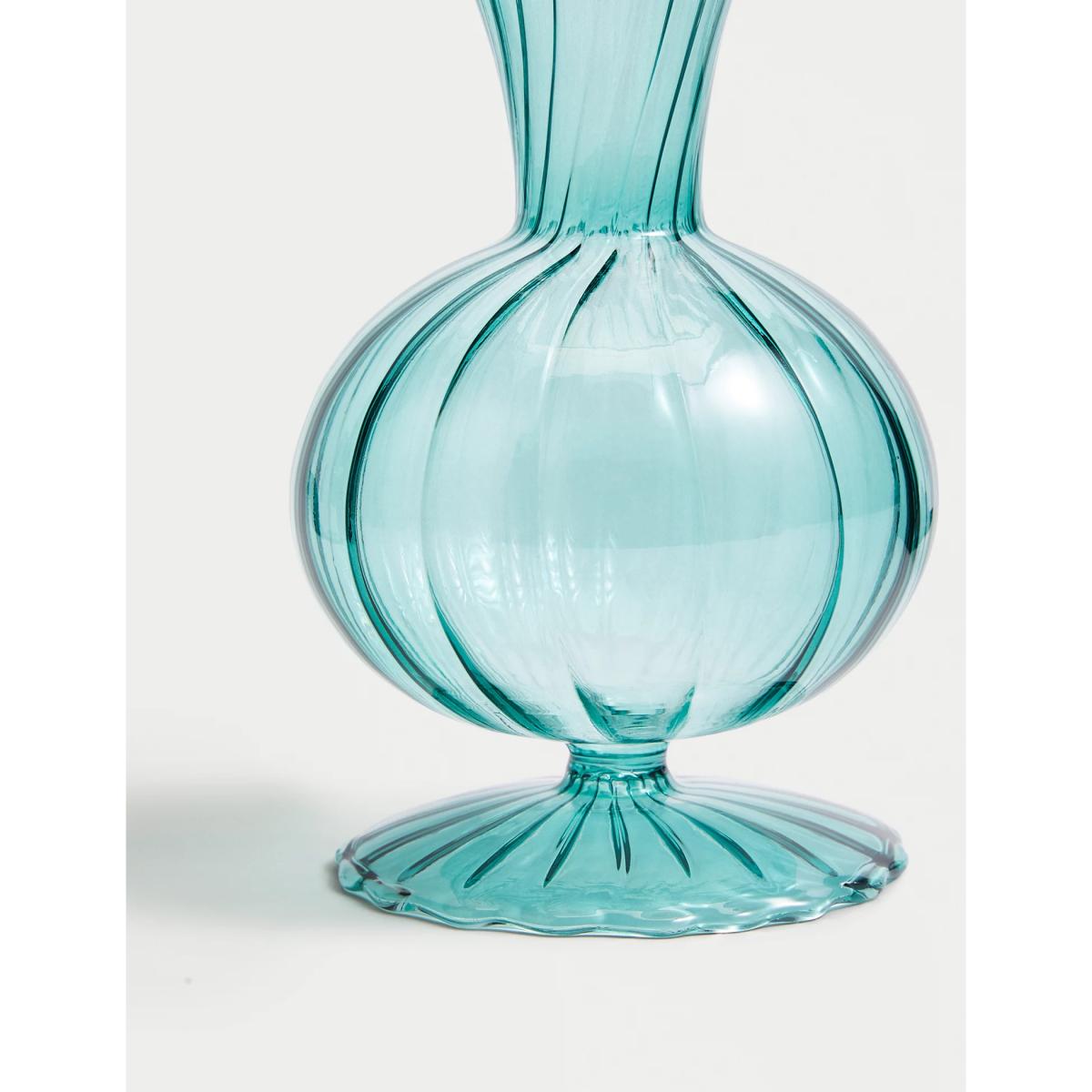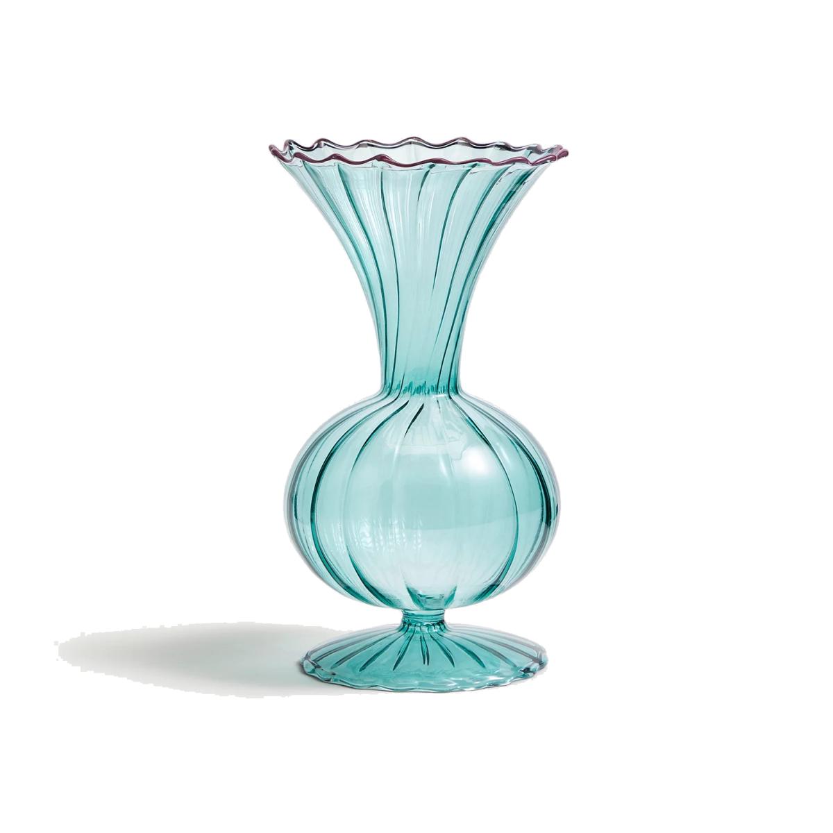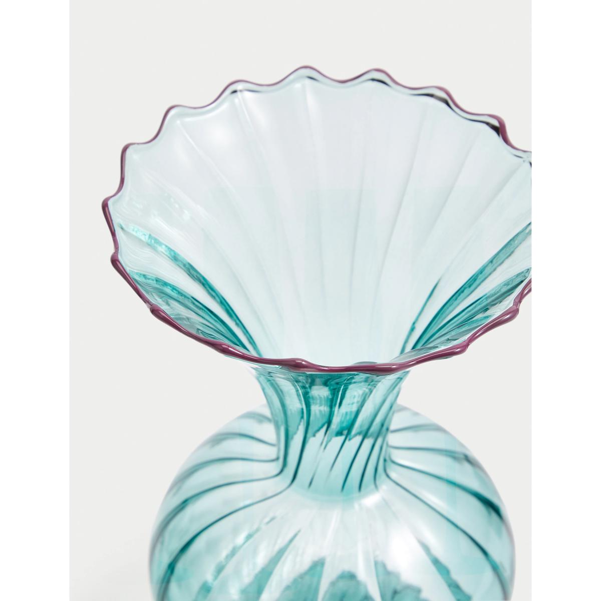 Add a vintage-inspired touch to your space with this small bud vase. It's crafted from durable coloured borosilicate glass with a textured, ribbed surface and finished with a contrast wavy rim.