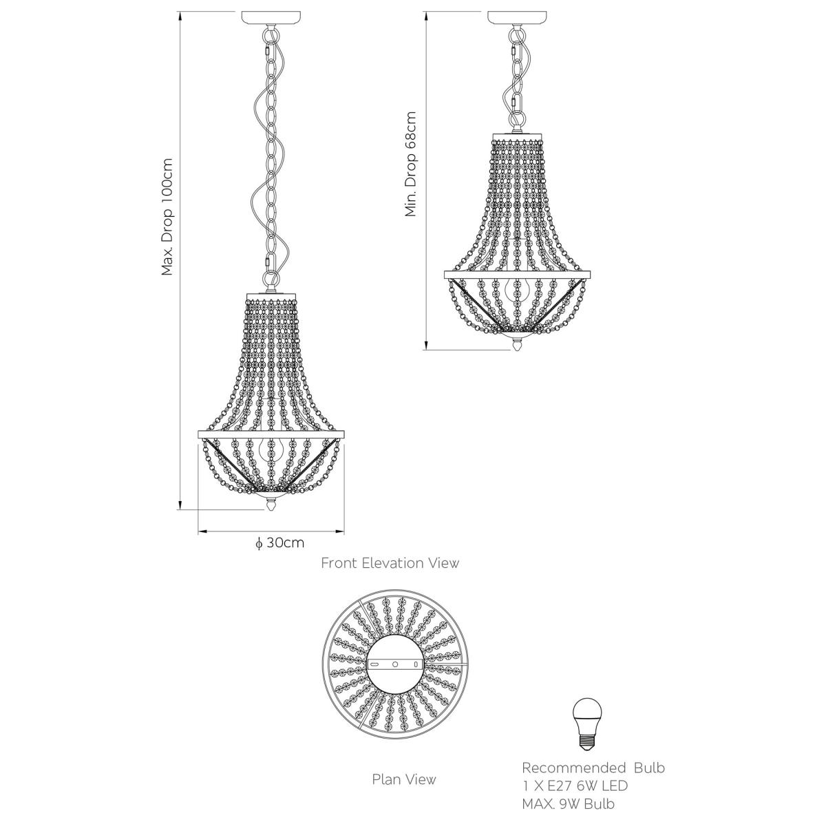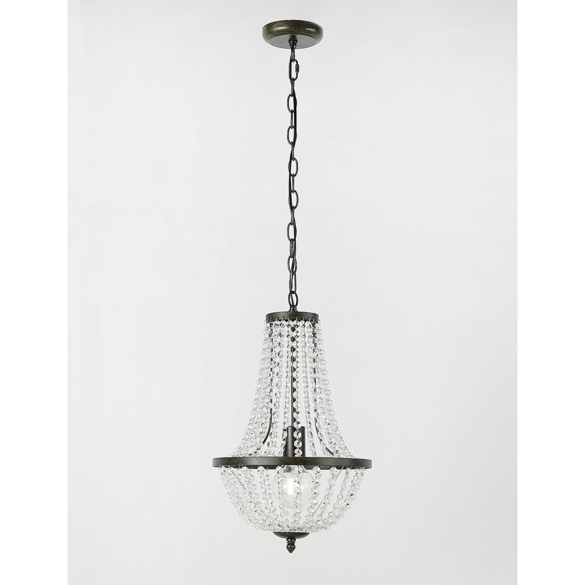 Add a vintage-chic feel to your space with this elegant chandelier. This small empire style is a perfect feature for cosier spaces. It features clear beads hung in a classic drop-shaped formation and has a contemporary black patina finish.