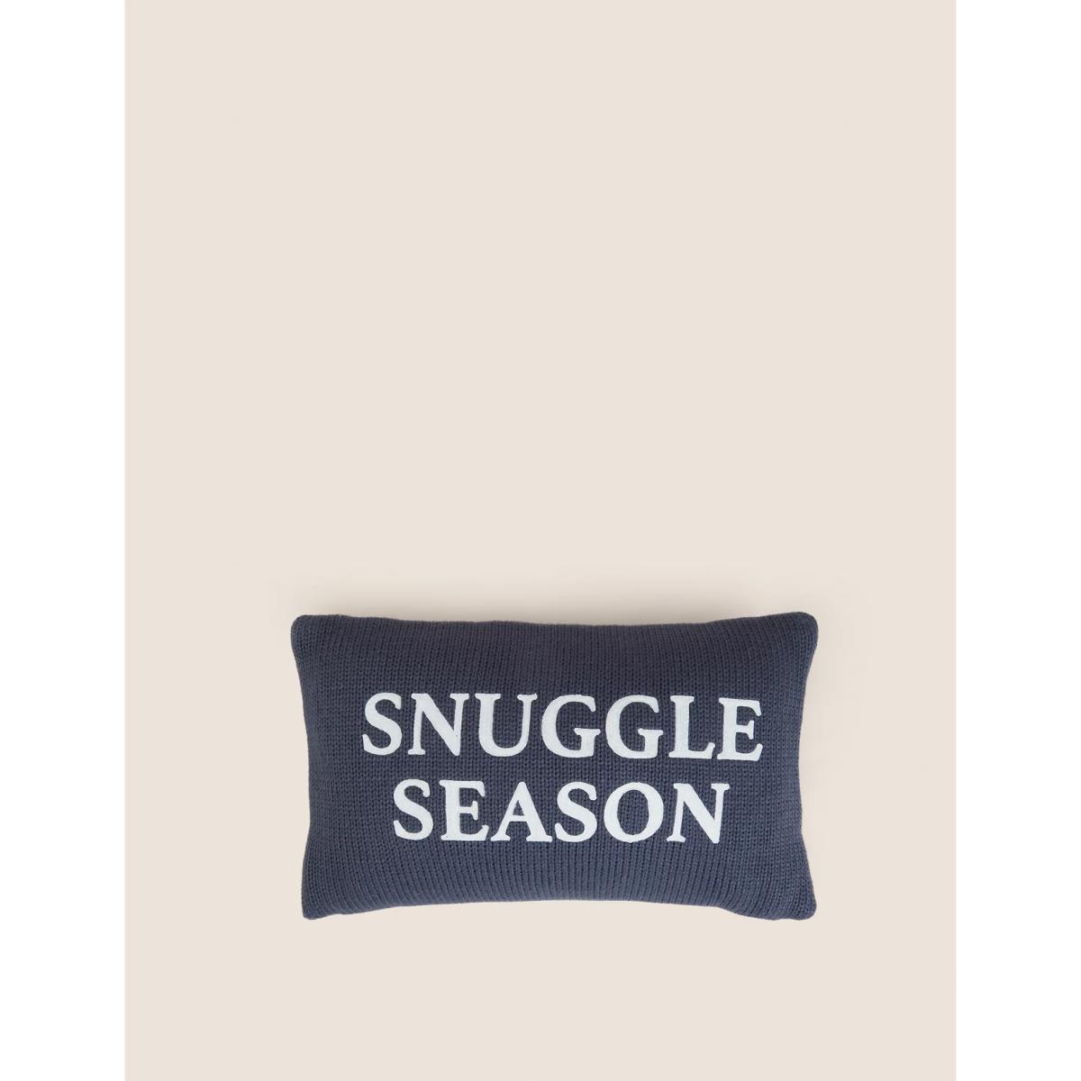 Bring a fun and warming feel to your interior decor with this bolster cushion. The slogan 'Snuggle Season' celebrates the colder weather, while the textured knitted cover brings a cosy feel.