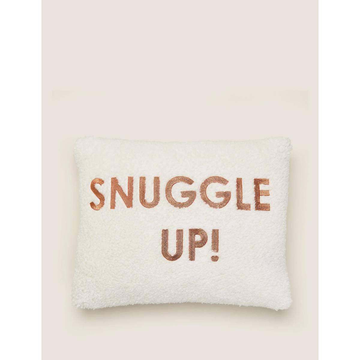 This Cushions is a playful addition that can work well in both cosy and contemporary interiors. I love it as a casual accent on a neutral sofa or bed, adding a touch of personality without overwhelming the space. Its embroidered "Snuggle Up" message makes it perfect for creating a comforting, inviting vibe-ideal for chill-out zones or bedrooms. For styling tips, pair it with textured throws or other cushions in complementary shades to create layers of interest. It’s versatile enough to sit comfortably among natural fibres for a relaxed look, or with more modern materials for a fresh, eclectic feel. Overall, it’s a practical and charming piece for bringing a bit of fun into your everyday decor.