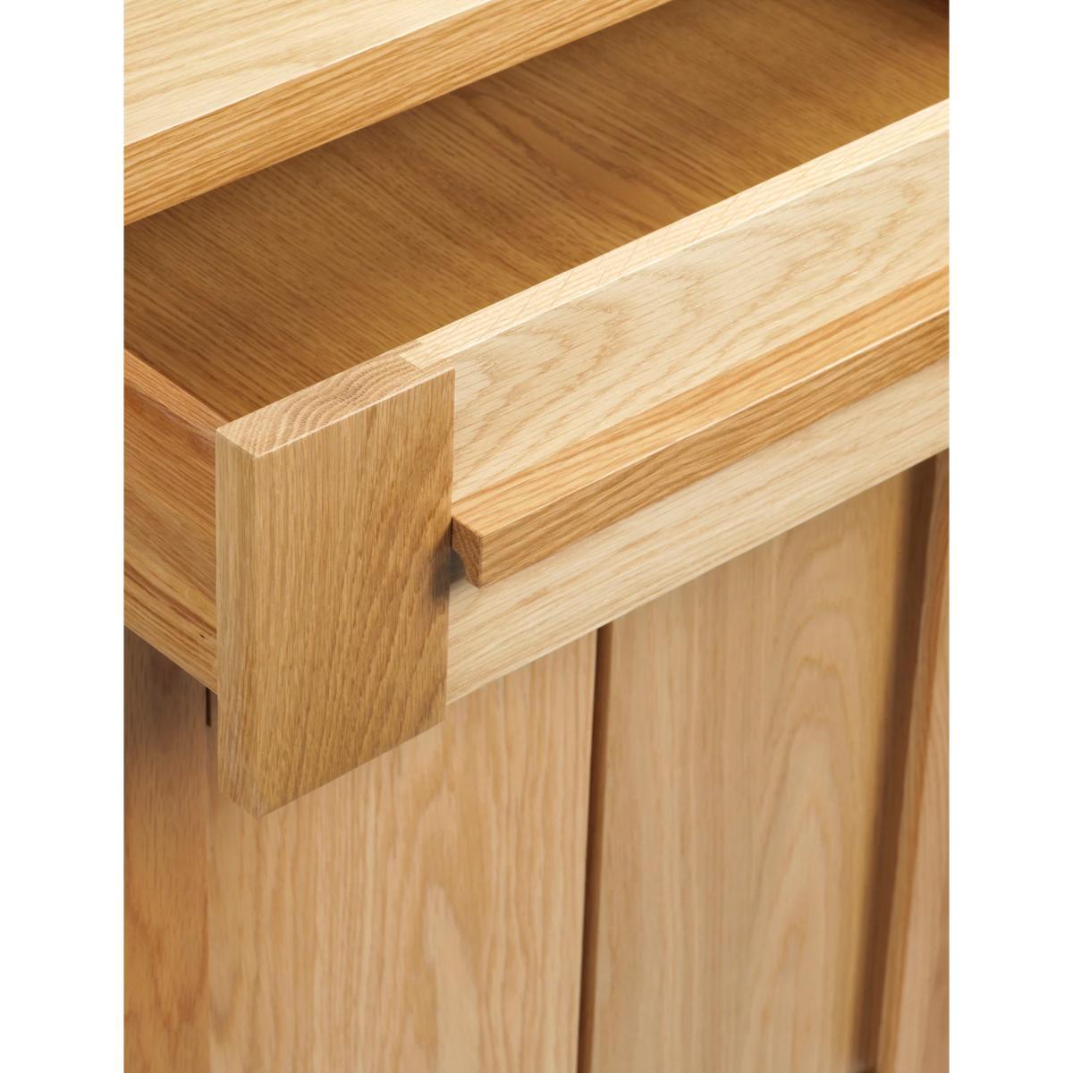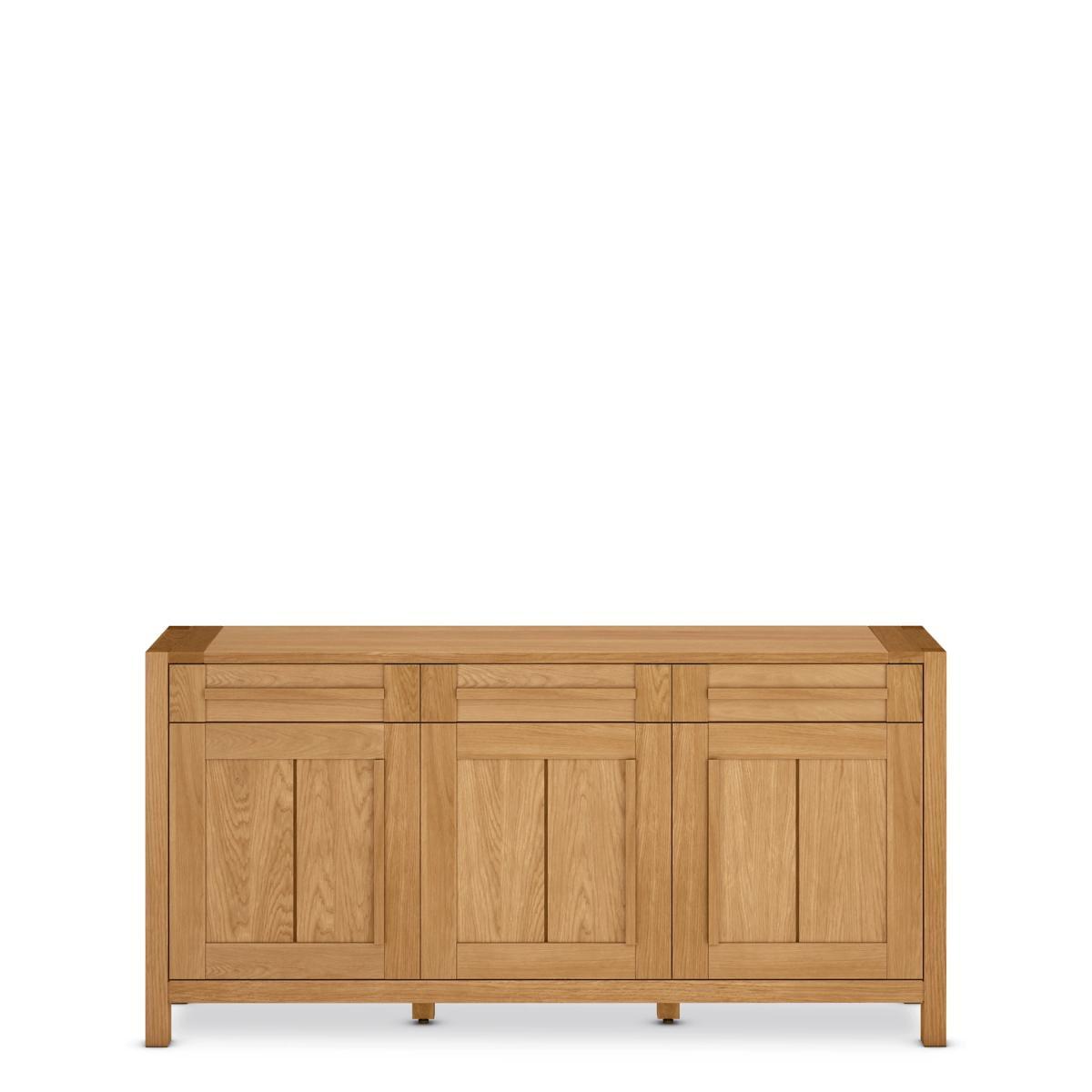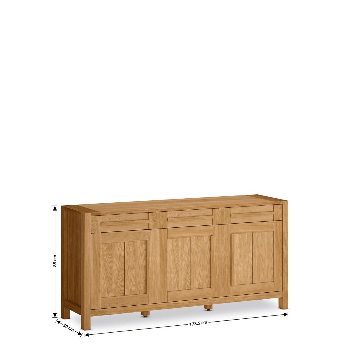 For a stylish storage solution that looks great in both modern and more traditionally designed rooms, look no further than this Sonoma™ light three door sideboard. We’ve built this attractive wooden sideboard predominately from solid oak and oak veneer and finished it with a low-sheen lacquer to keep it looking great for years to come. Featuring soft-close doors and drawers and with a shelf running along the width of the unit, it’s the perfect place to store all manner of items, while the top surface makes for a great spot to display plants, vases or artworks.
