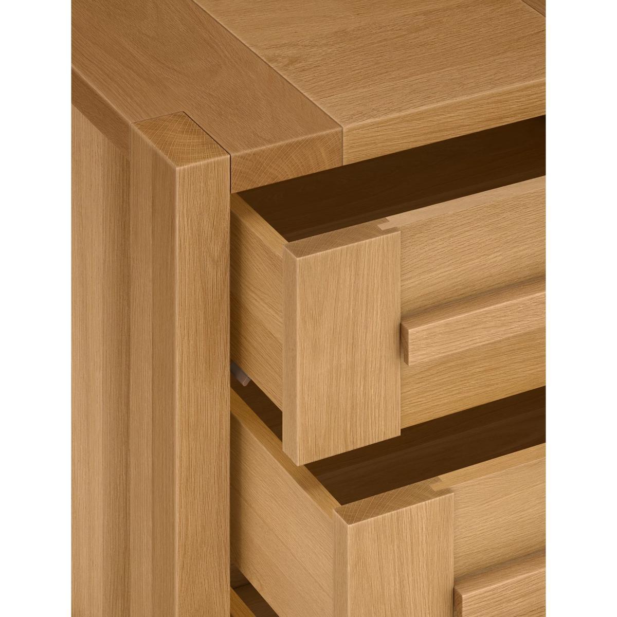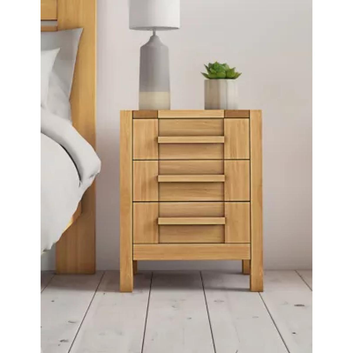 I really like this bedside table because of its clean, streamlined profile and natural oak finish, which lends itself well to both contemporary and Scandi-inspired interiors. Its sturdy build and multiple drawers make it a practical choice for keeping essentials close at hand without cluttering the space. Stylish tips include pairing it with light, neutral bedding and minimal accessories to highlight its warm wood tone, or mixing it with softer textures like woven baskets or textiles for a cosy feel. It works particularly well in bedrooms with a natural or minimalist aesthetic, but can also add warmth to more eclectic setups when styled with a few colour accents or metallic accents on top.