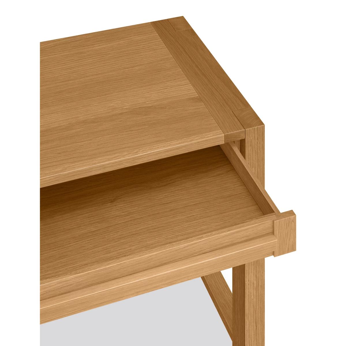 Simple yet elegant, this Sonoma™ desk provides a no-fuss solution for when you need to work or study from home. We’ve built this wooden desk from predominately solid oak and oak veneer to give a bright yet subtle feel that complements a wide variety of spaces. The pull-out drawer with fold-down front is the perfect place for a keyboard, and we’ve finished this desk with a low-sheen lacquer for added durability so you can use this workspace year after year.