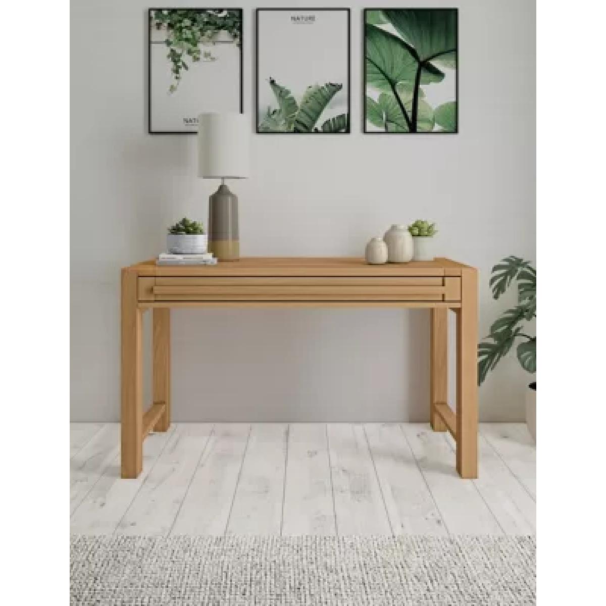 I love the M&S Sonoma™ Desk for its clean, natural oak finish that brings warmth and simplicity to a variety of interiors. It works particularly well in Scandi-inspired spaces or minimalist setups, thanks to its straightforward design and sturdy construction. For styling tips, consider keeping the surface uncluttered with a few decorative accents like a small plant or a sleek lamp to enhance the natural vibe. It’s versatile enough to serve as a workspace or a console table in an entryway, making it a practical yet stylish addition to both modern and traditional interiors.