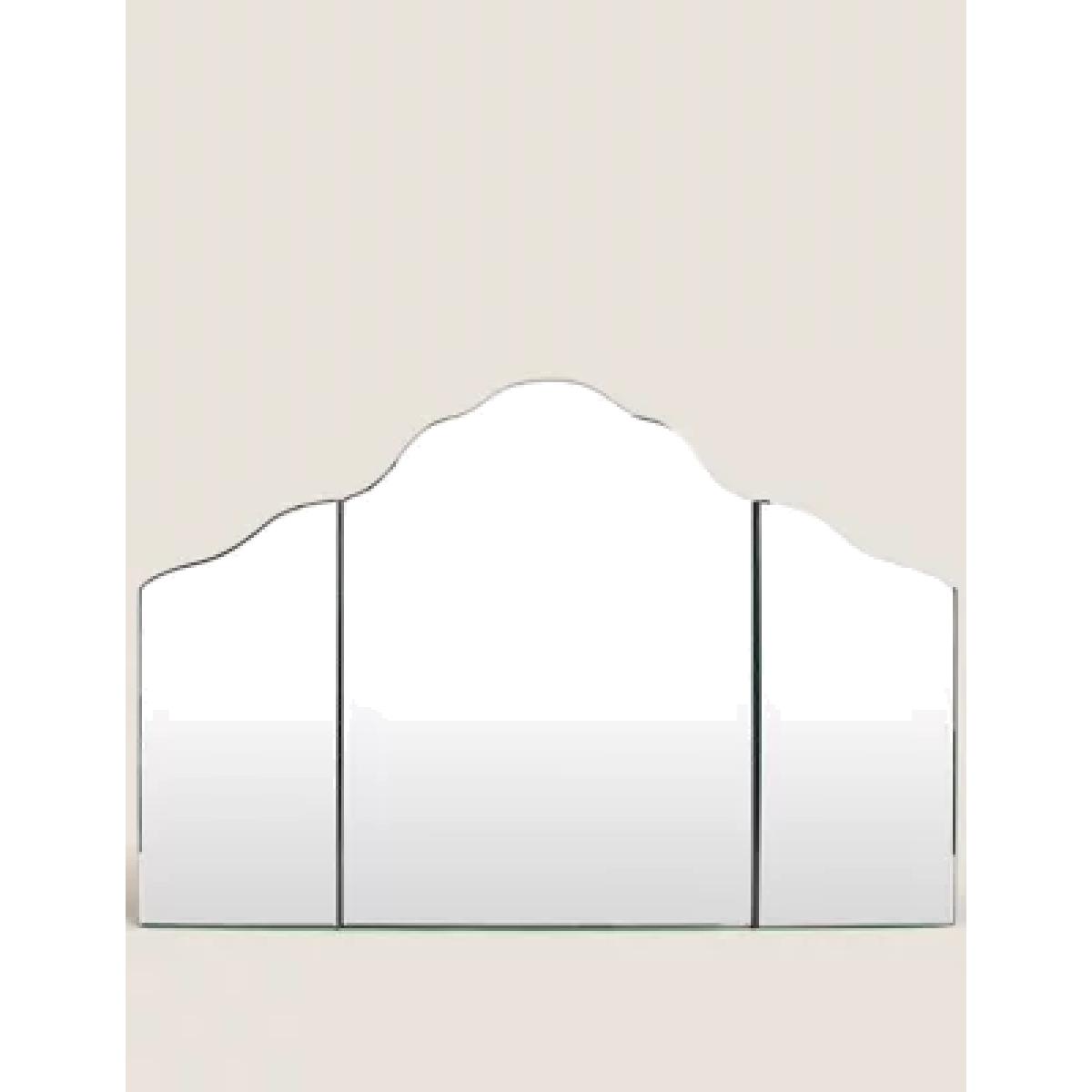 Add some style to your bedroom with this three-part dressing table mirror. The fold-out sides let you see yourself from all angles, while the curved top edge adds an elegant touch. A silver frame completes the piece.