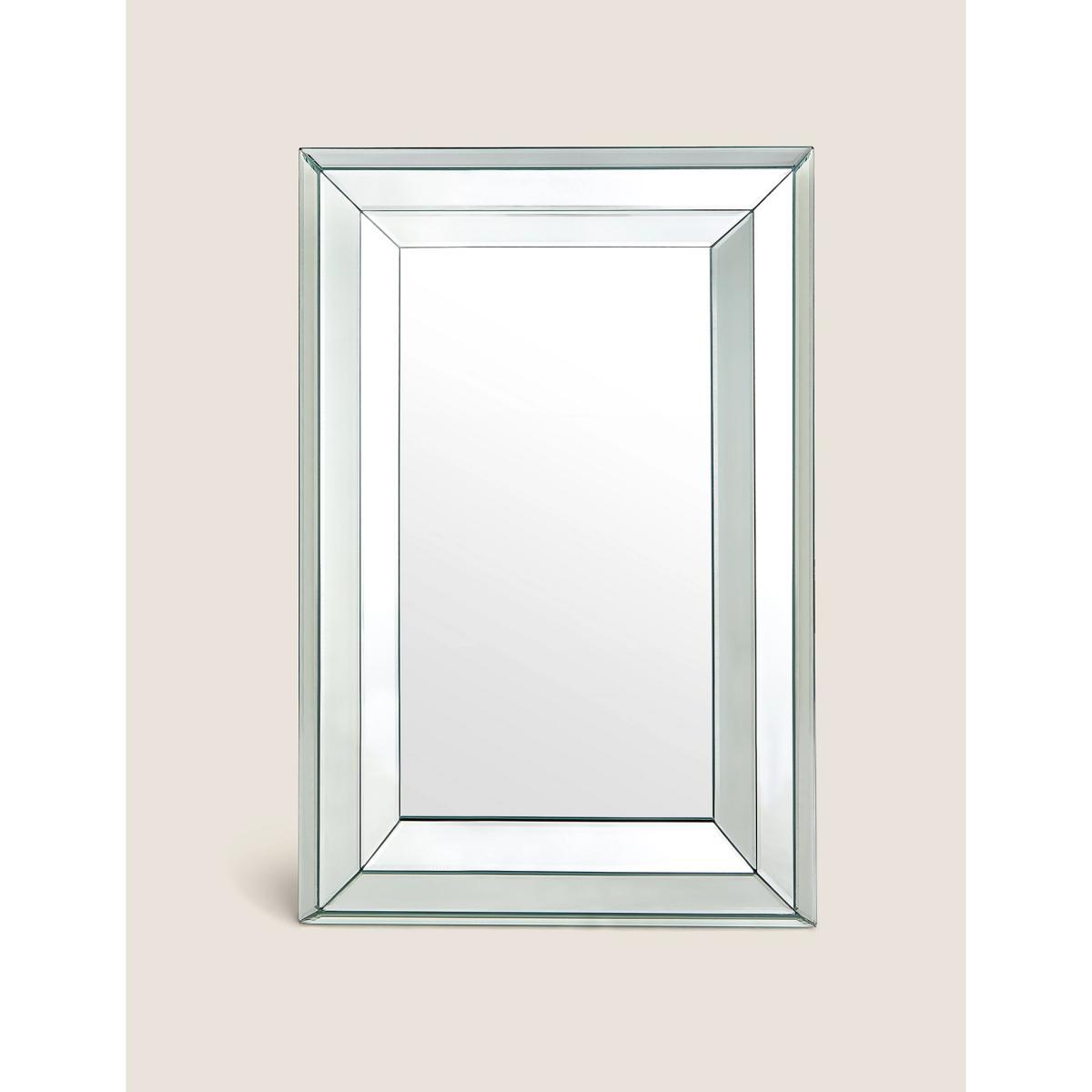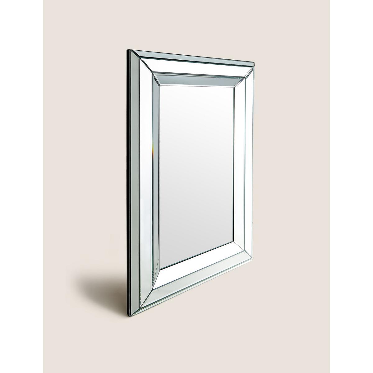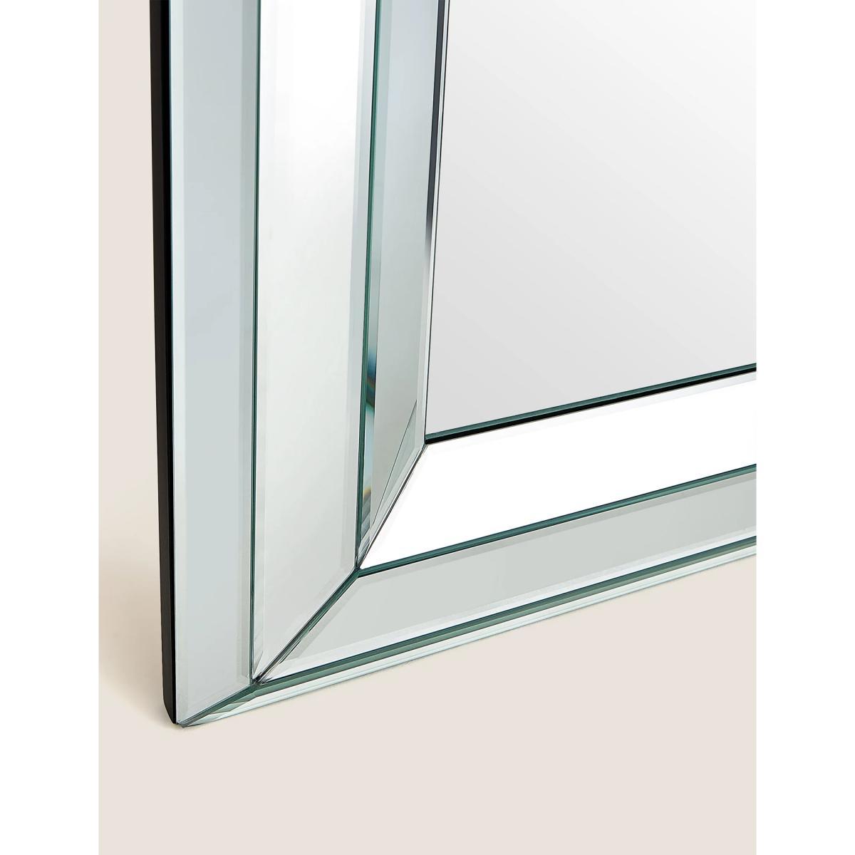 Angled glass panelling gives this large mirror an elegant and stylish look. Stand it against the wall, or hang it upright or sideways to add an eye-catching feature to your living space.