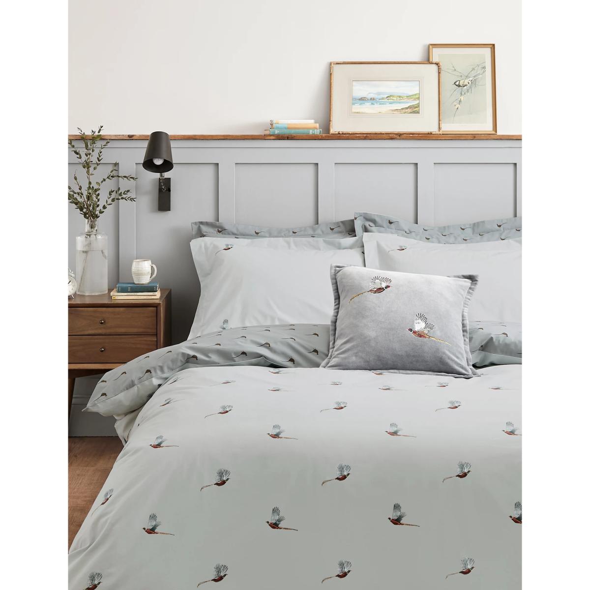 This luxurious bedding set from Sophie Allport features an elegant pheasant print, for a touch of country-cottage charm. Its 200 thread count cotton fabric feels gloriously soft and breathable. The reverse side shows pheasant silhouettes, giving you extra styling choices. Matching items are available.