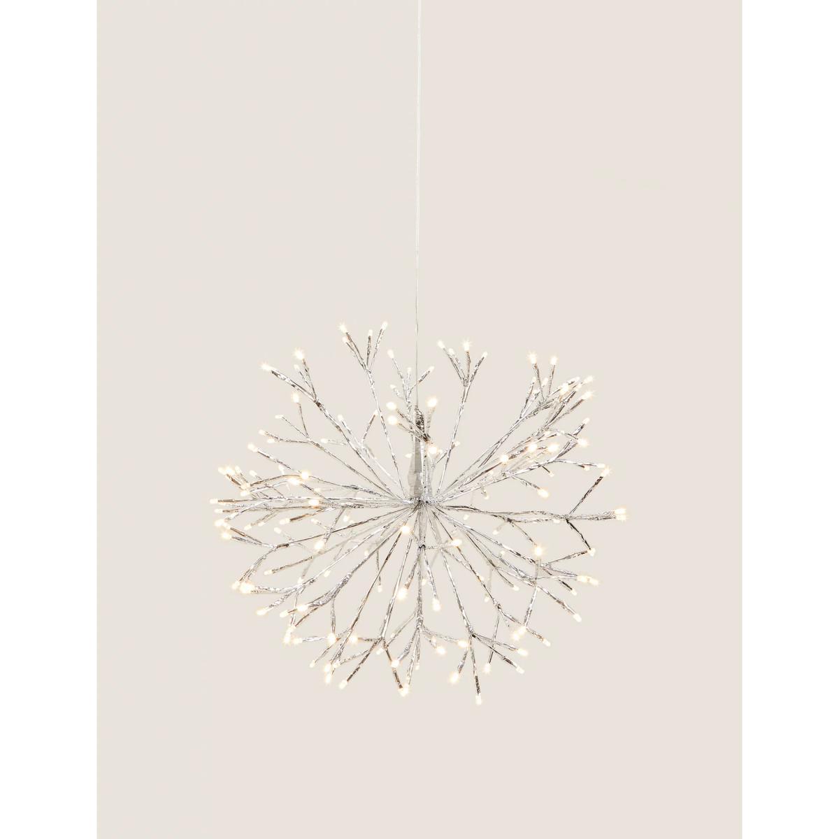 This starburst-shaped light brings an enchanting glow to your home. Each silver branch is topped with warm white LED lights that are mains-powered.