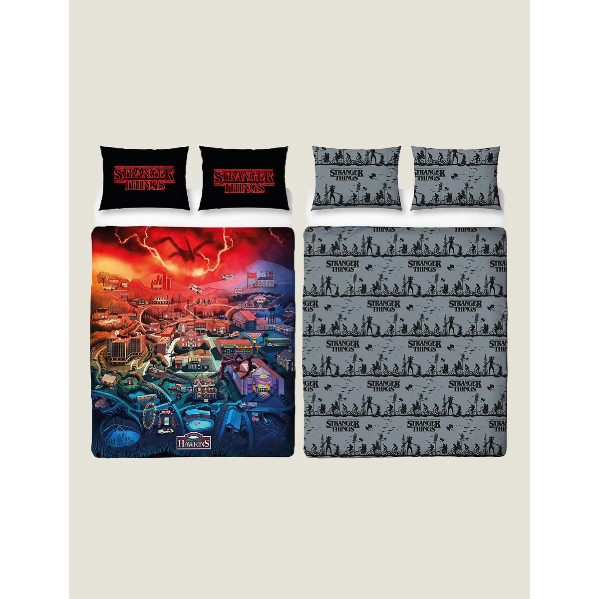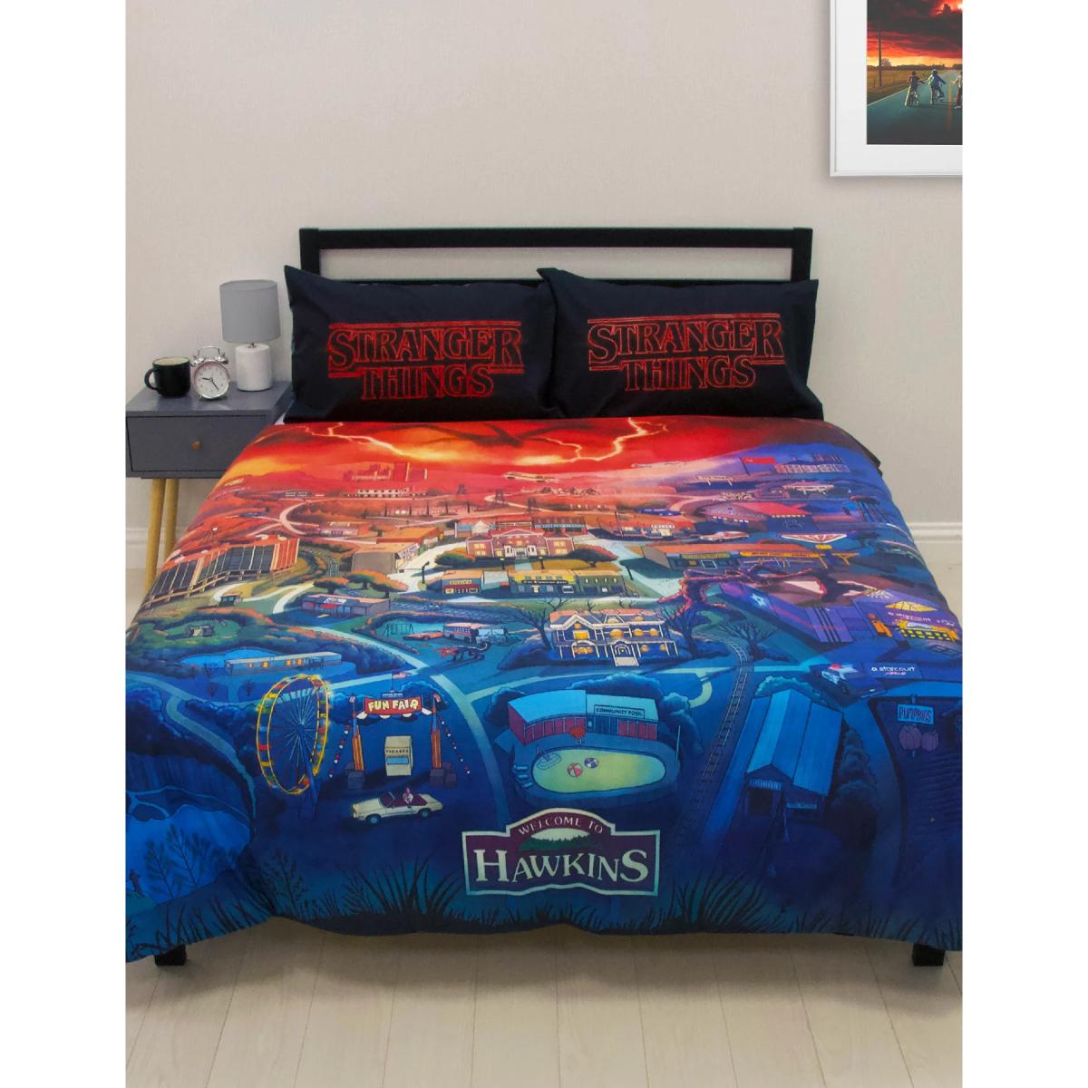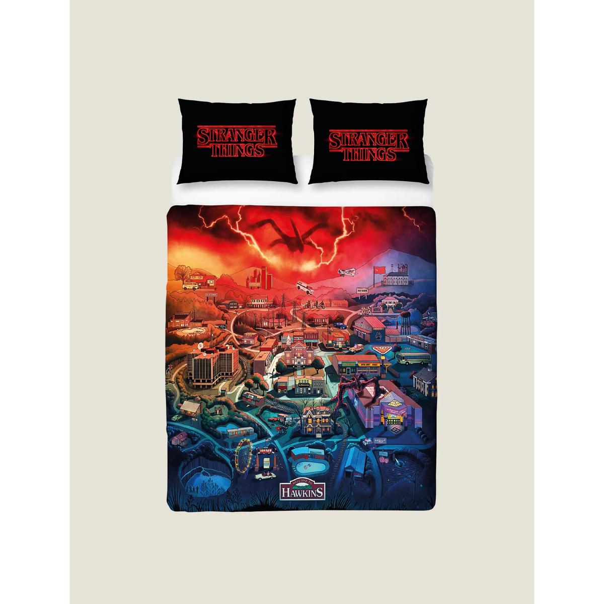 Head into the treacherous world of the Upside Down with this Stranger Things bedding set. Perfect for fans of the hit TV series, this set is made from a cotton blend features all the iconic Hawkins town landmarks on one side and a repeat pattern on the reverse.
