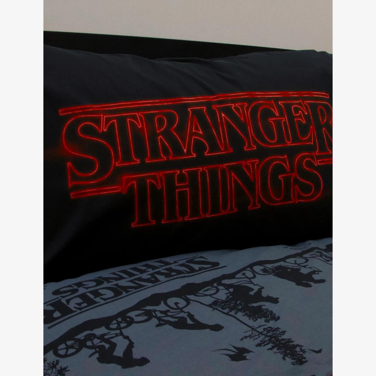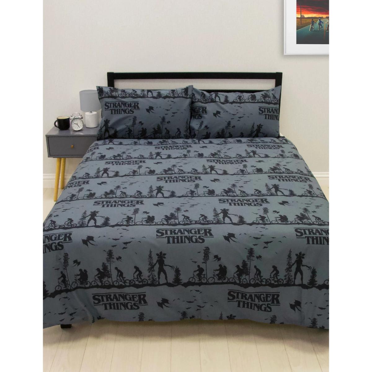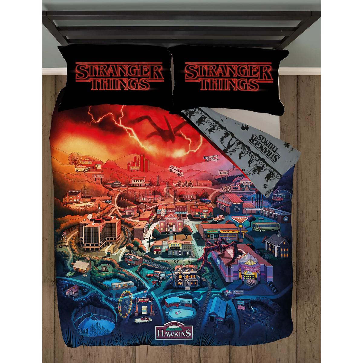 Head into the treacherous world of the Upside Down with this Stranger Things bedding set. Perfect for fans of the hit TV series, this set is made from a cotton blend features all the iconic Hawkins town landmarks on one side and a repeat pattern on the reverse.