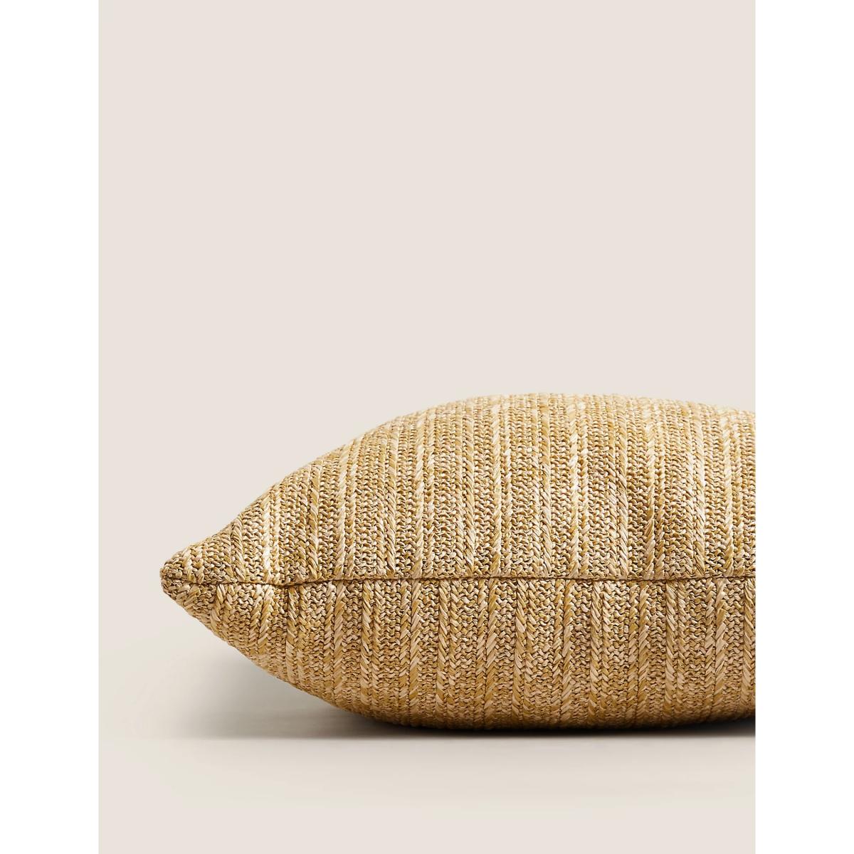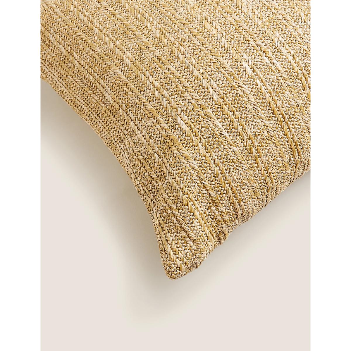 Bring a touch of rustic chic to your décor with this contemporary straw cushion. This square, medium-sized cushion has the added benefit of being water-resistant, making it ideal for use in the garden.