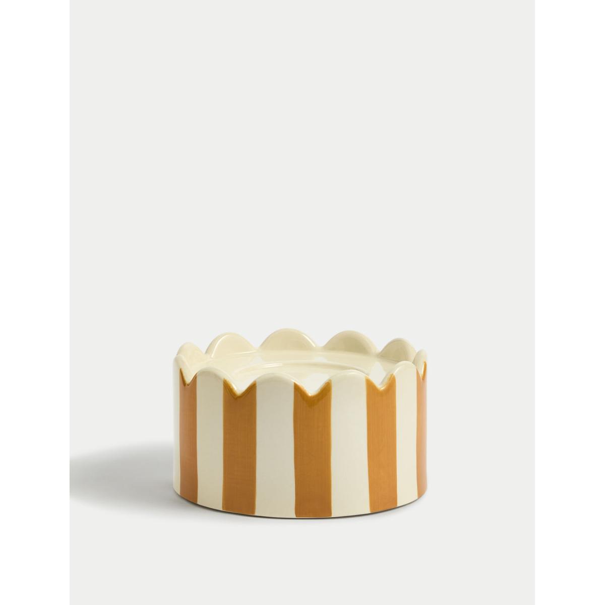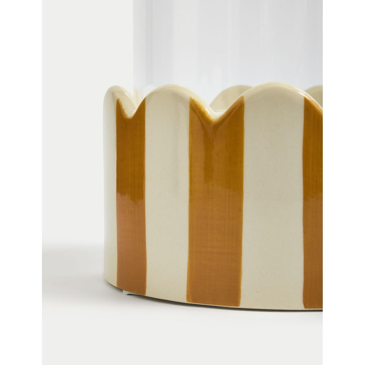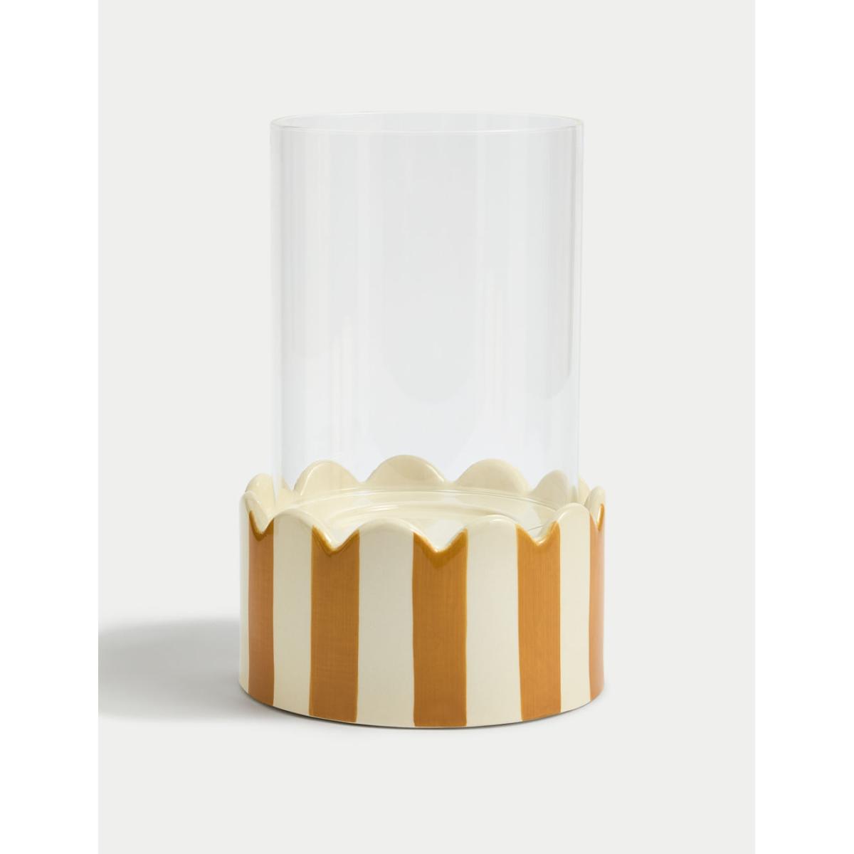 M&S Striped Ceramic Hurricane Candle Holder - Ochre, Ochre