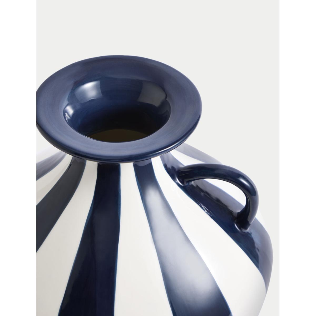 M&S Striped Ceramic Vase - Navy, Navy