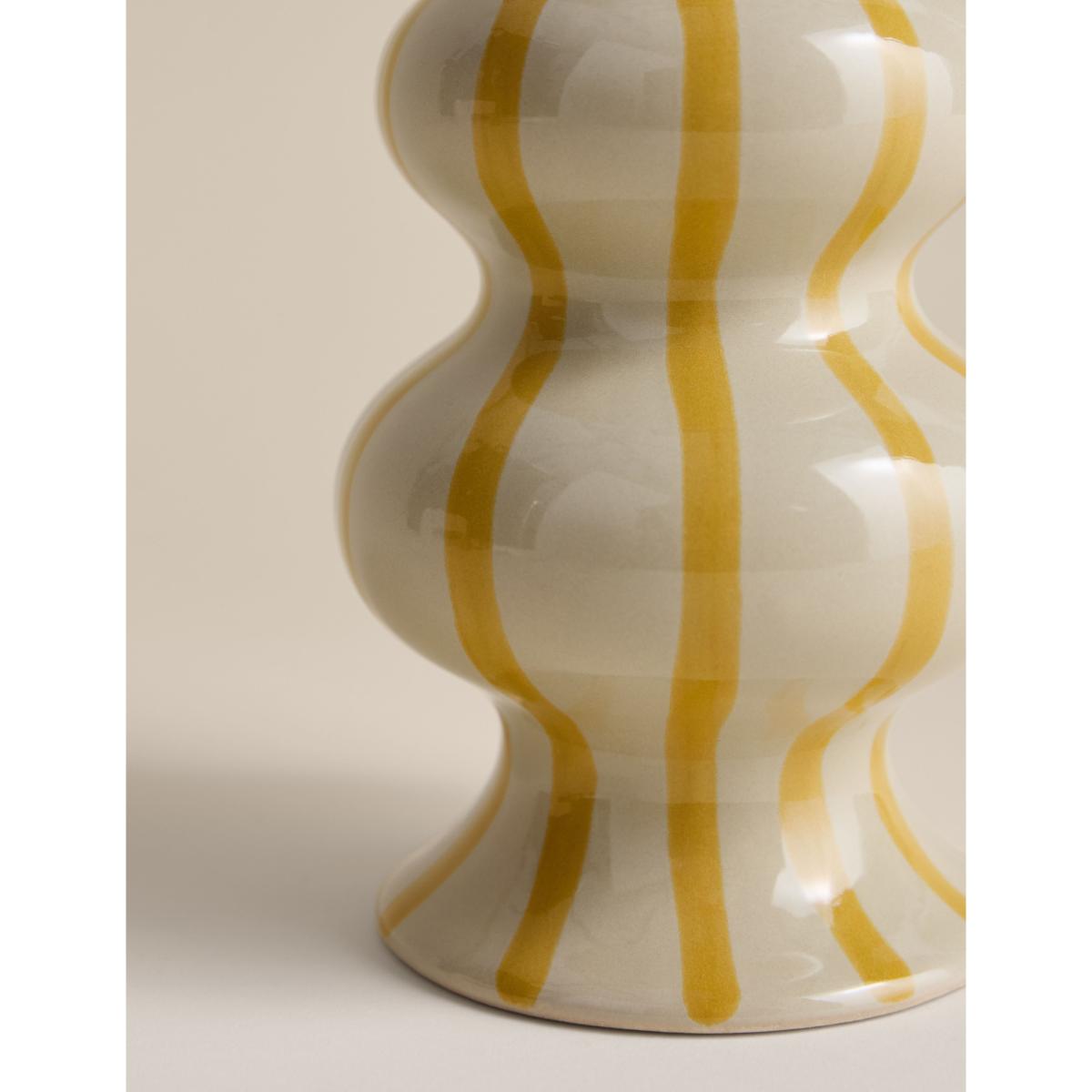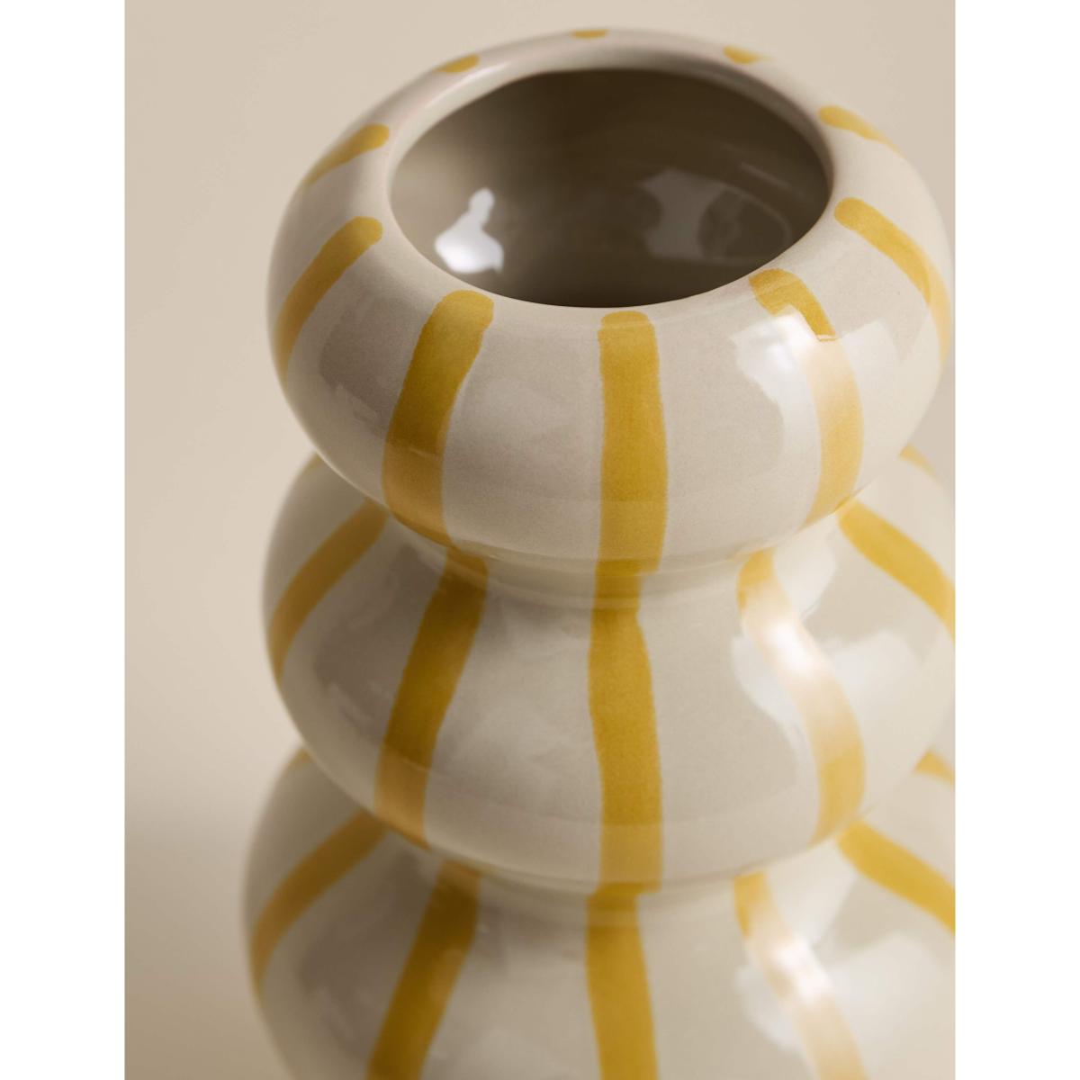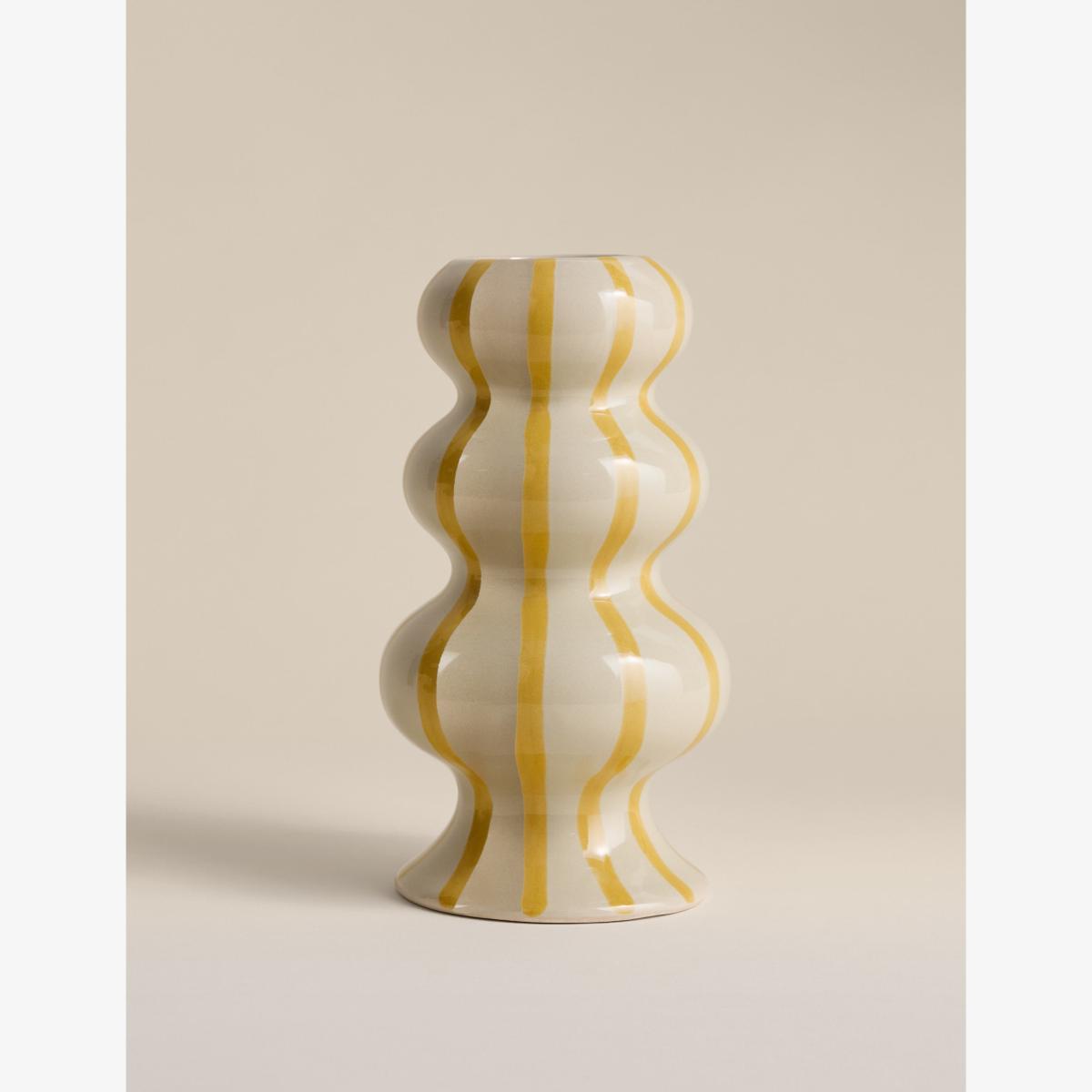 A sculptural silhouette combines with playful pattern in this eye-catching ceramic vase. It's made in a cylindrical shape and features wavy curved lines that bring a fun look to any interior. The hand-painted striped design offers an artistic finish.