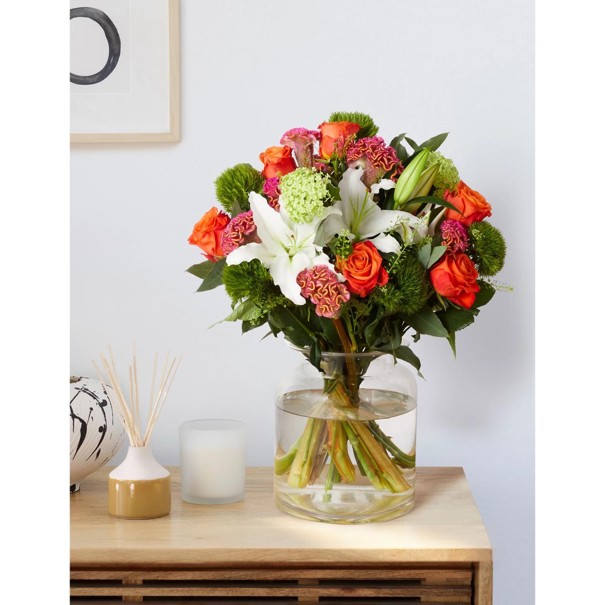 I love the Summer Meadow bouquet for its vibrant and fresh look, which instantly brightens up any space. It’s versatile and works particularly well in contemporary or pared-back interiors that benefit from a splash of colour without the upkeep of fresh flowers. This arrangement is perfect for adding personality to a side table or console, and because it’s artificial, it’s ideal for spaces where real flowers wouldn’t last. When styling, consider pairing it with minimalistic vases or placing it in well-lit spots to enhance its vivid hues. Practical tip: keep the arrangement looking natural by occasionally fluffing the blooms or adjusting the stems, ensuring it remains a lively focal point all year round.