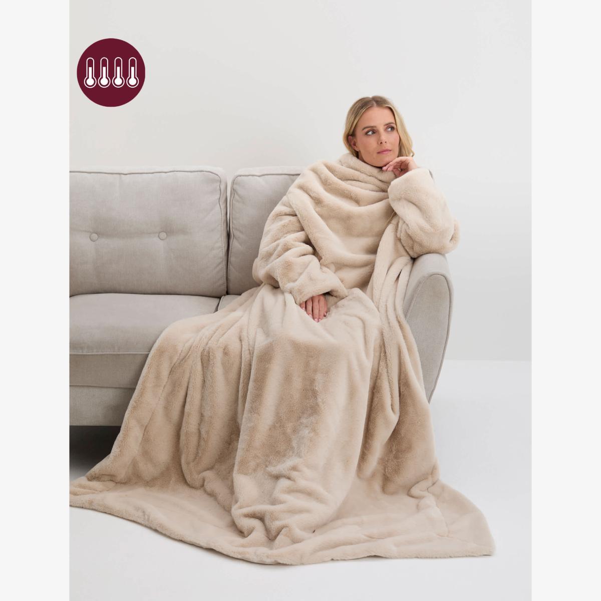This wearable blanket is the next best thing to your duvet, perfect for cosy evenings on the sofa. Made from supersoft faux fur that feels like a warm hug. Sleeves give you freedom of movement while keeping you perfectly snug. Ultra Warmth Heat Rating: Our Ultra Warmth rating is for the chilliest of days, means that this fabric is proven to show enhanced thermal performance helping you keep warm.