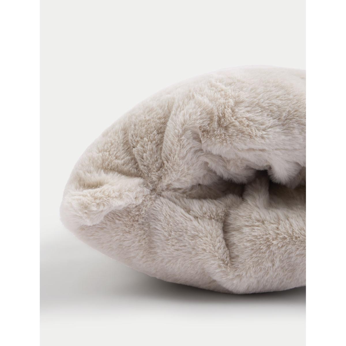 We've designed our supersoft pocket cushion with space inside for your hands, making it extra cosy. It has a cuddly faux fur finish and is perfect for resting on your lap on chilly days.