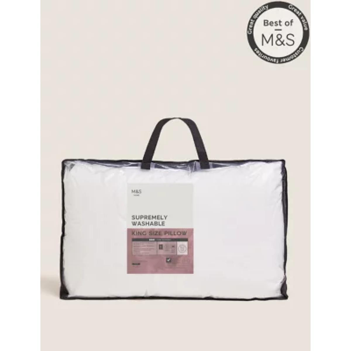 M&S Supremely Washable Kingsize Firm Pillow - White, White