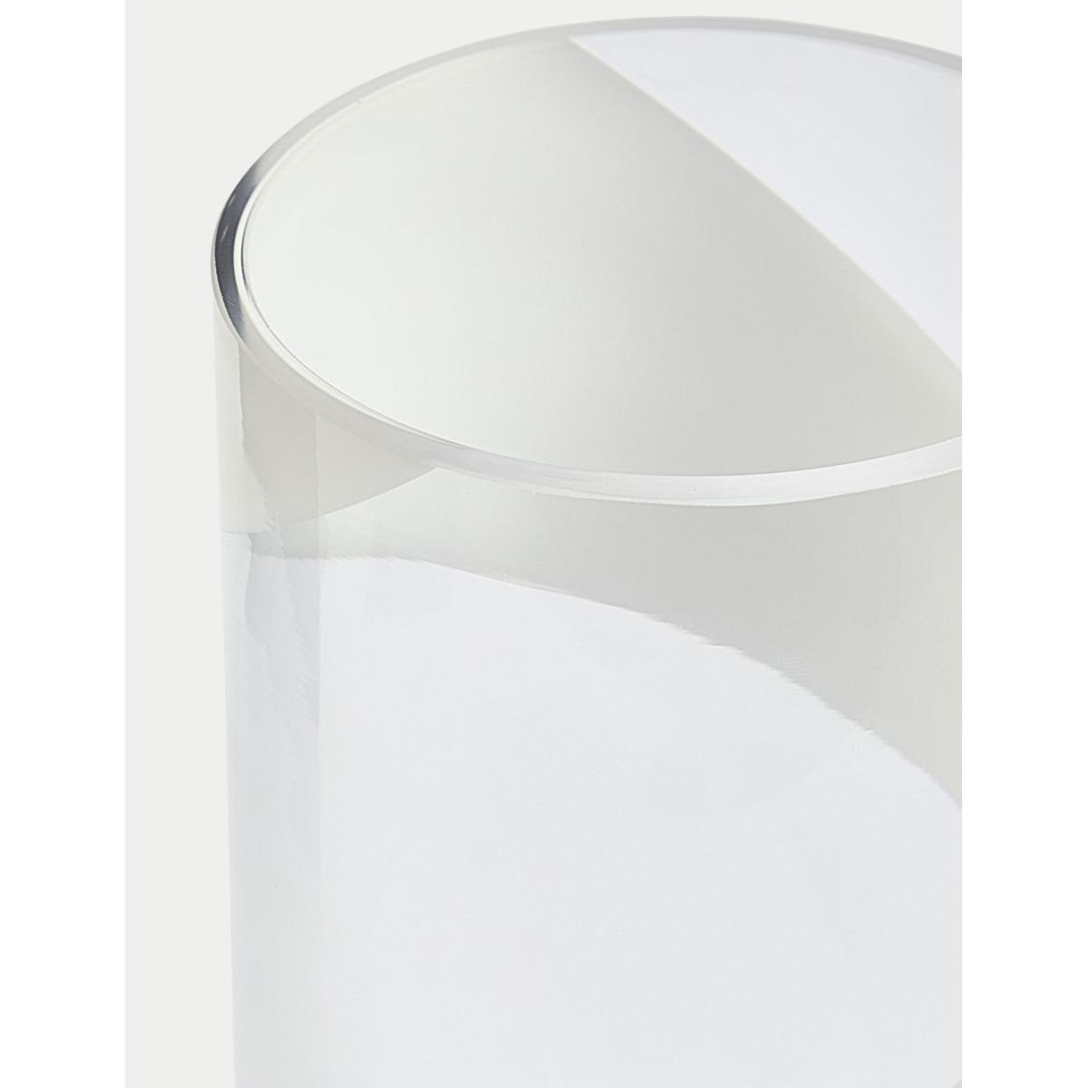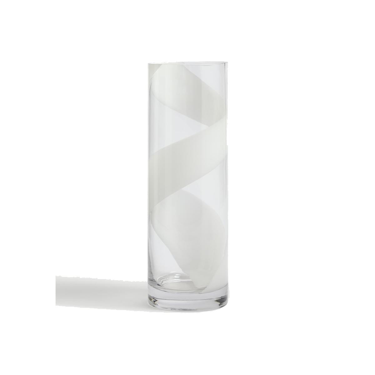 This cylinder vase is perfect for displaying your seasonal blooms. It's made of glass with a stylish, opaque swirling pattern. This piece is mouth-blown, giving it a unique look.