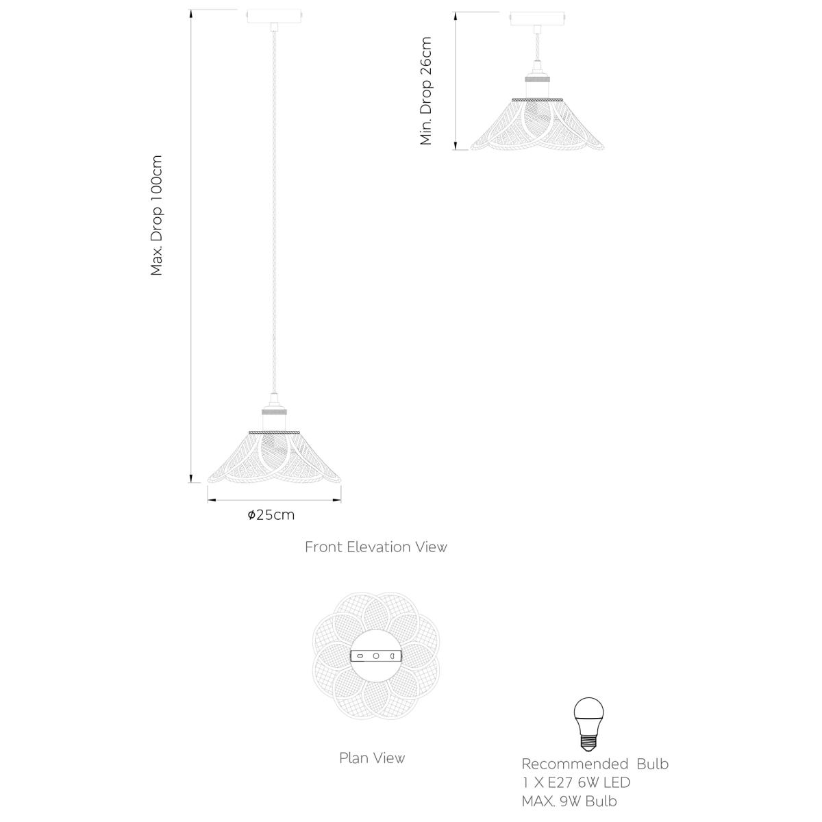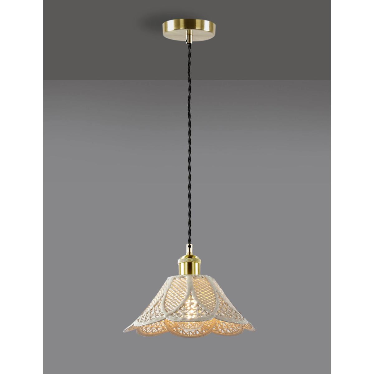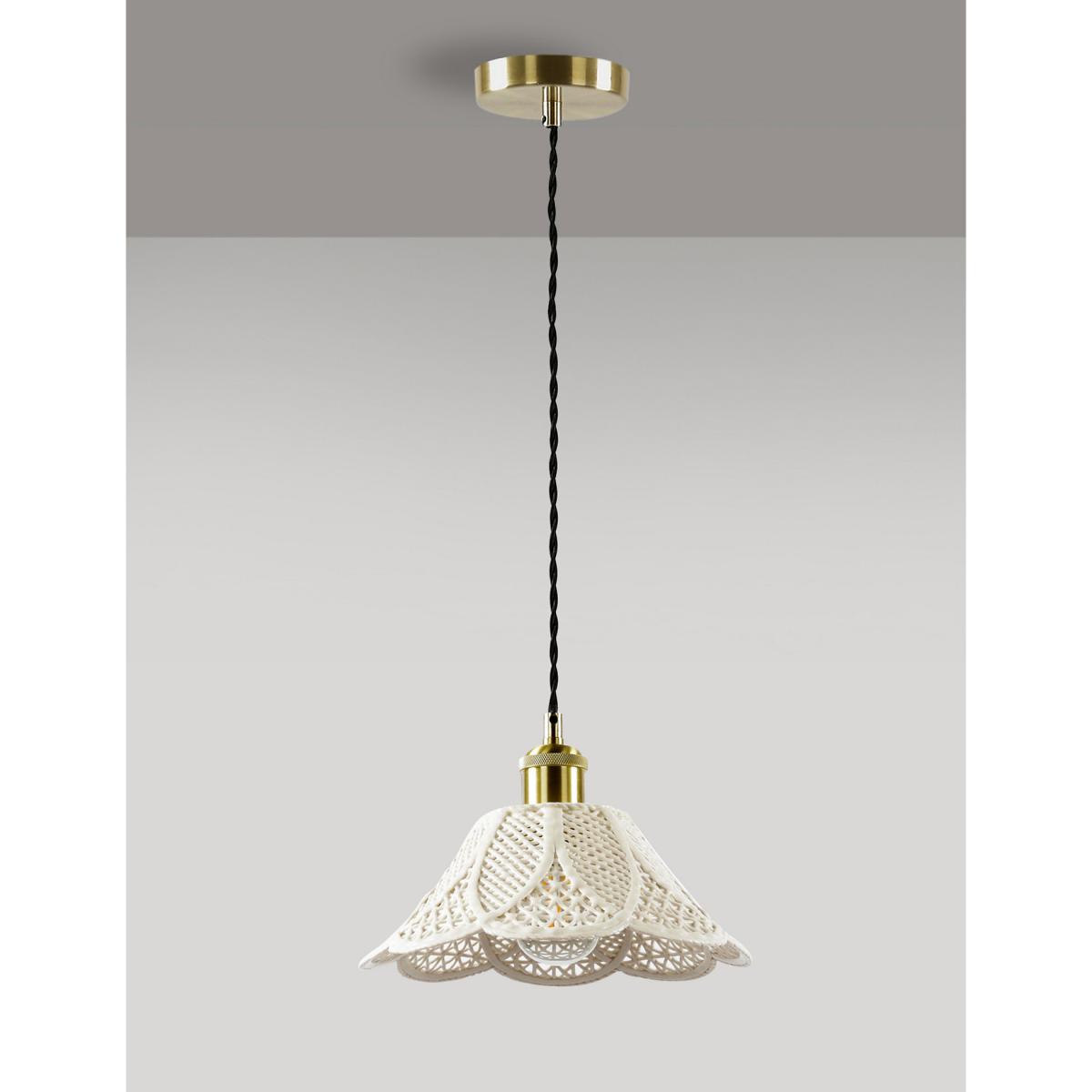 This beautiful pendant light takes its inspiration from the shape of a flower. It's hand-crafted from ceramic to an intricate design and comes with a brass bulb holder kit to complete the classic look.