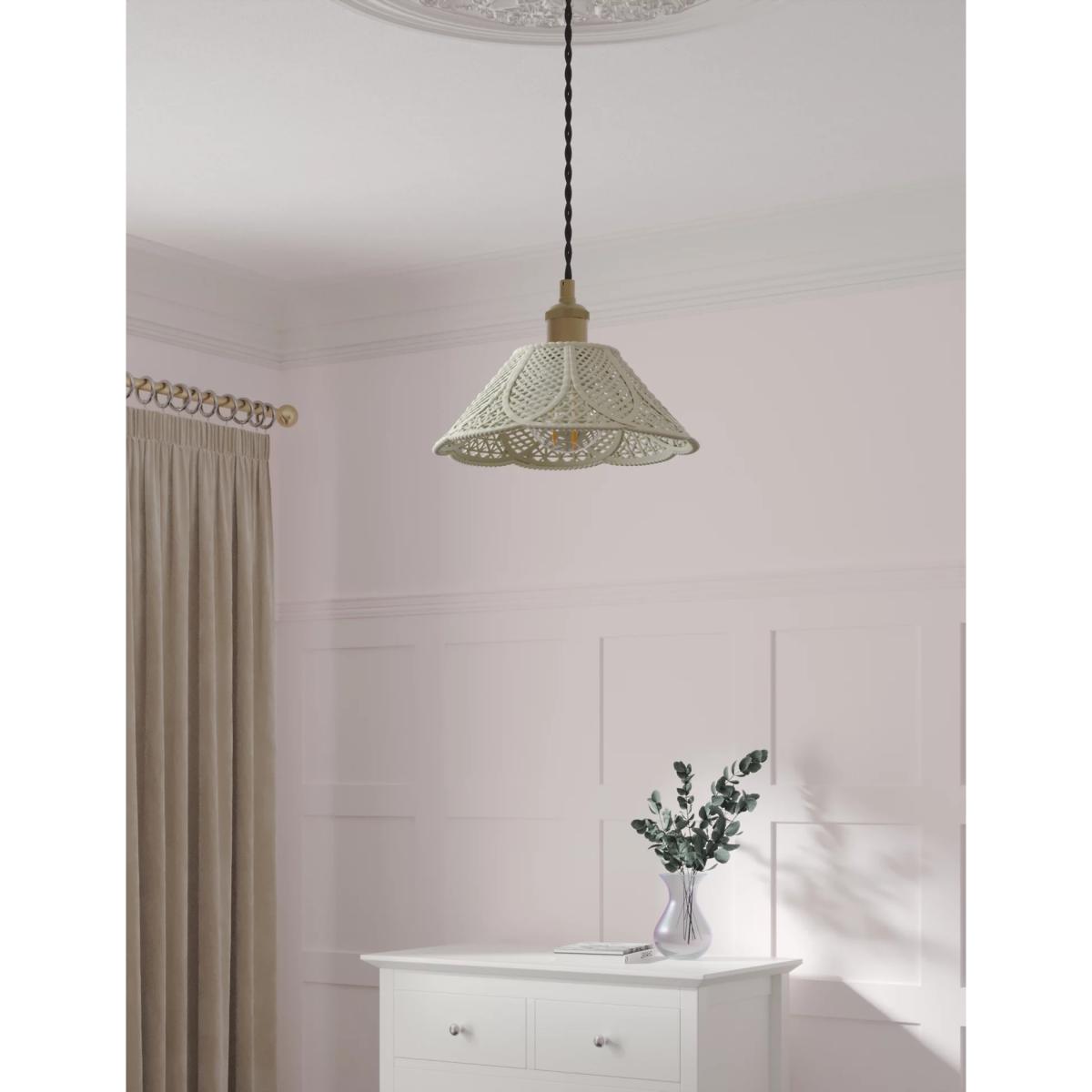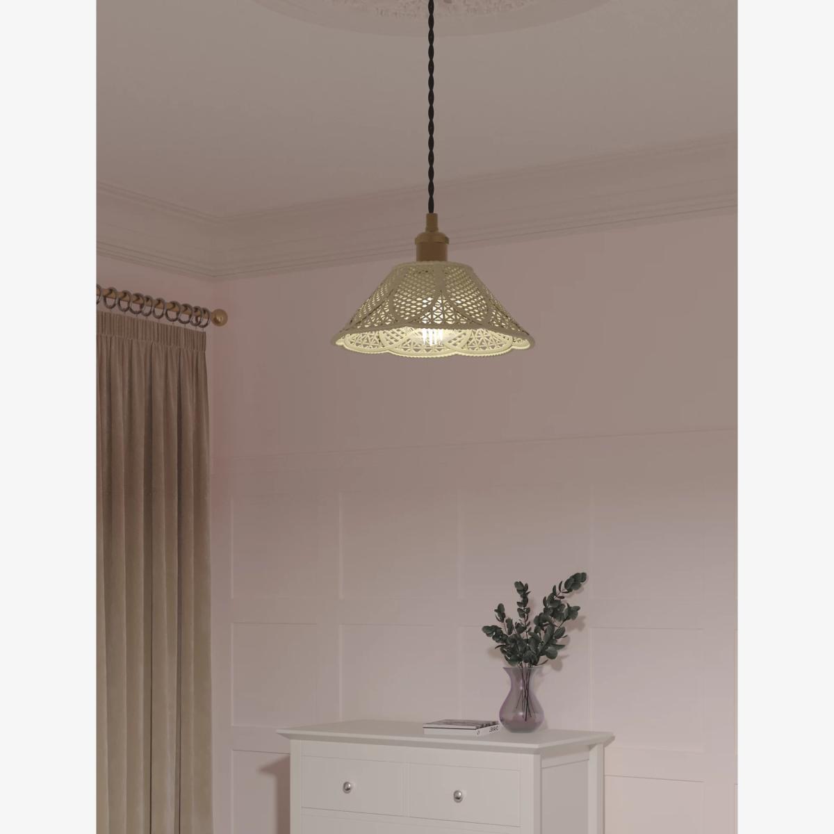I really like this pendant - it’s a versatile piece that works beautifully in both classic and contemporary interiors. The cream finish gives it a soft, neutral tone that complements a wide range of colour schemes, from warm earthy palettes to crisp minimalist spaces. It’s ideal for creating cosy lighting in kitchens, dining rooms, or even bedrooms, especially when hung over a table or bedside area. To style it effectively, consider pairing it with other cream or neutral accessories, or layering it with different textures to prevent it from feeling too plain. Its understated elegance makes it a fail-safe choice for adding subtle charm and warmth without overpowering the space.