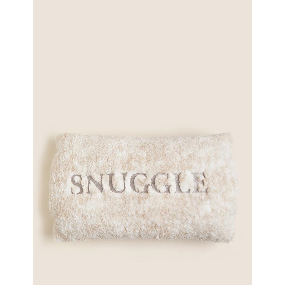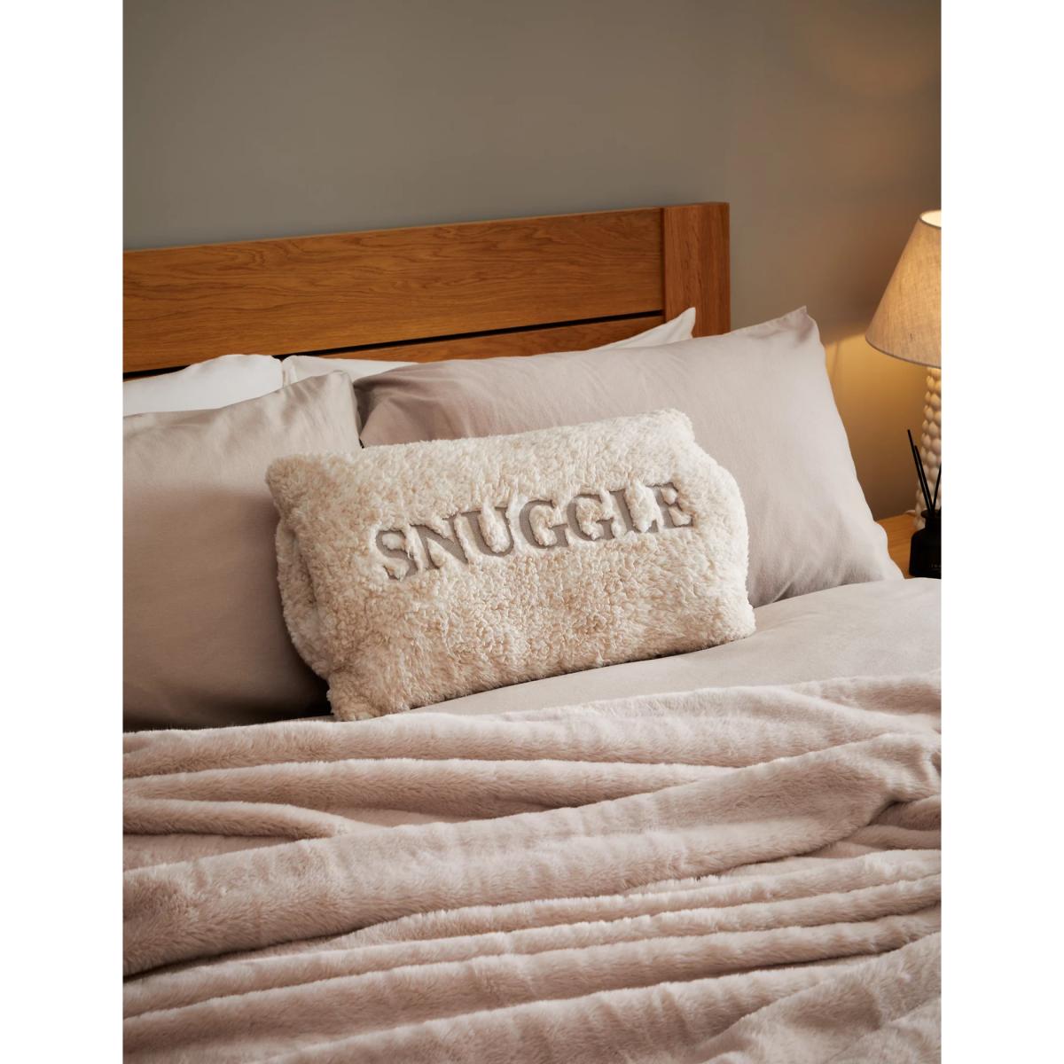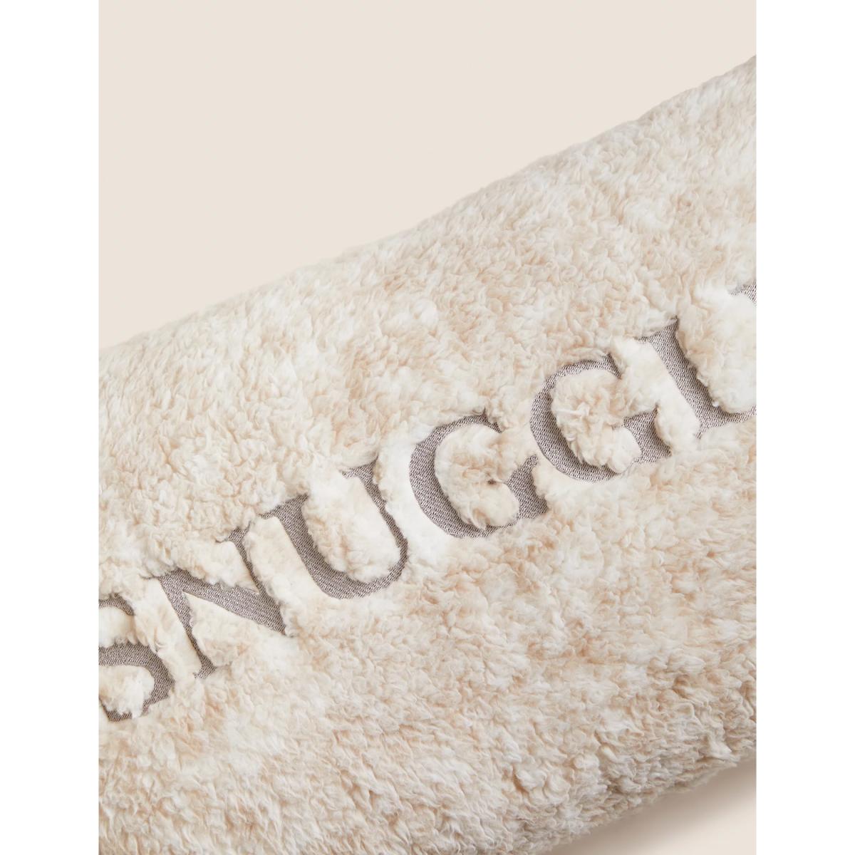 Cuddle up with this soft teddy fleece bolster cushion. Pockets on either side allow you to slip your hands into the cushion to keep them warm. It's complete with an embroidered 'Snuggle' slogan, perfect for setting the mood for cosy nights in.