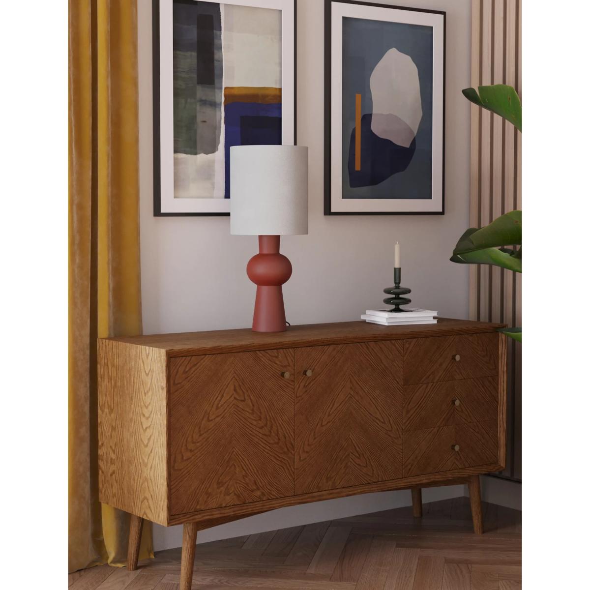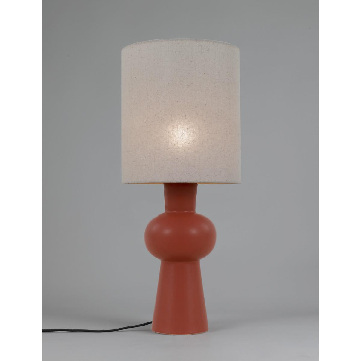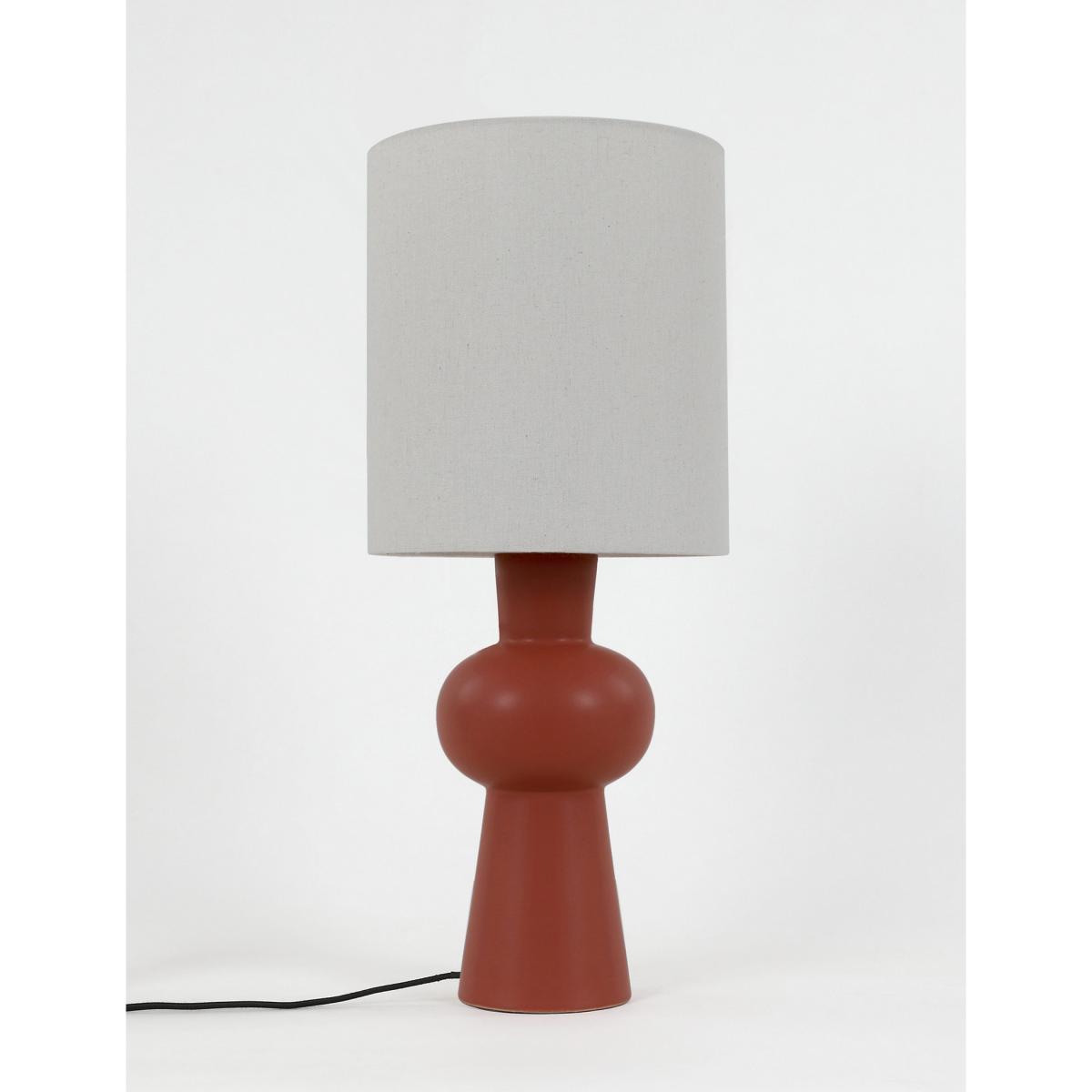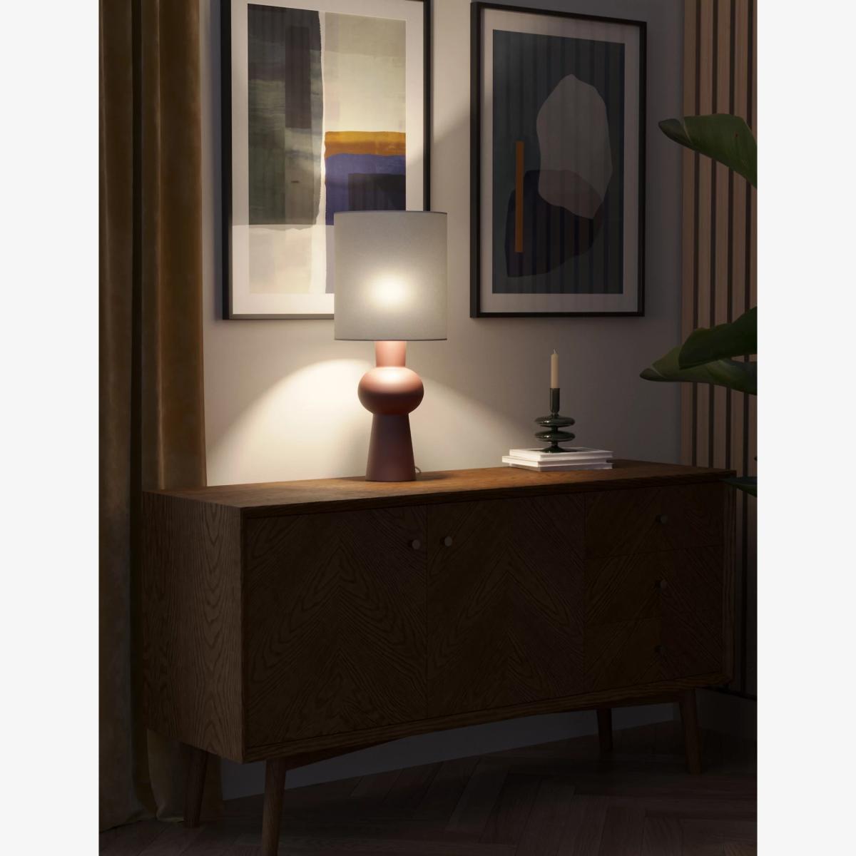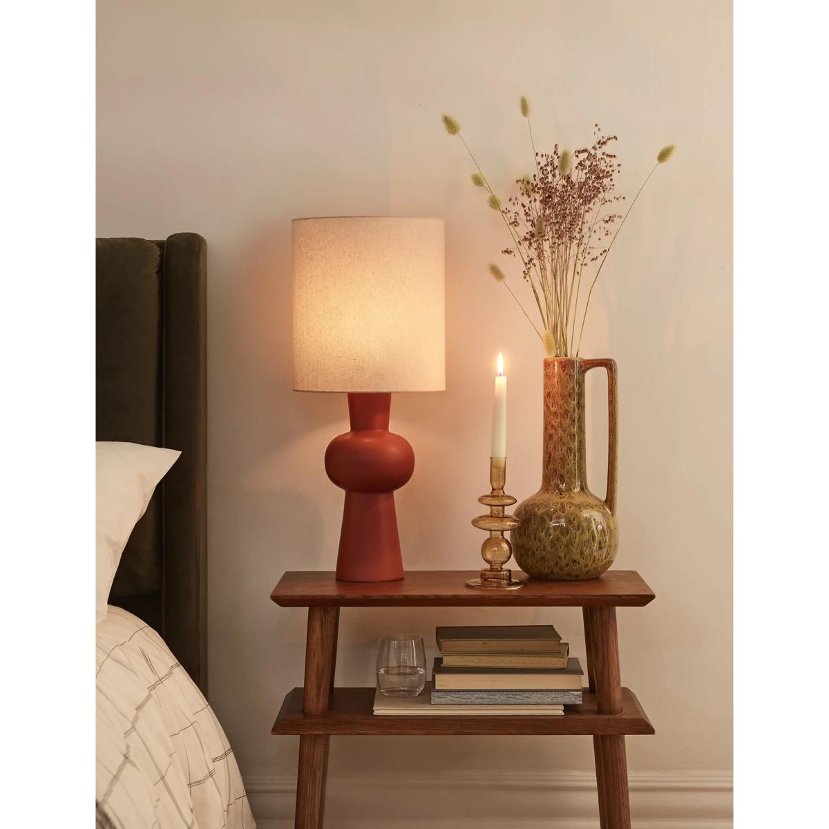 The Theo table lamp will add an extra point of interest to any room. Its sculptural base is crafted from durable ceramic and its bulb is encased in a classic fabric shade for a subtle yet decorative look.