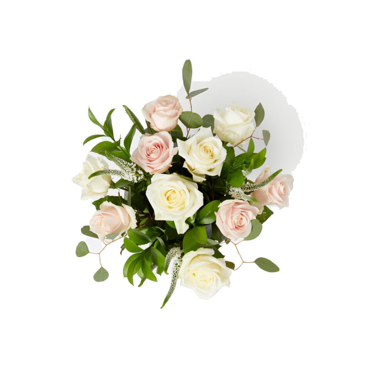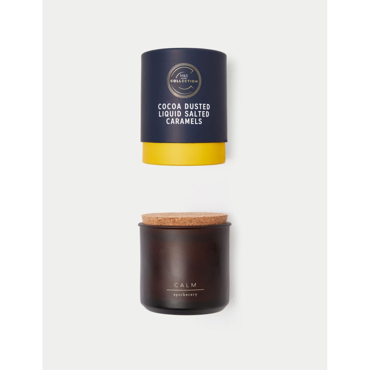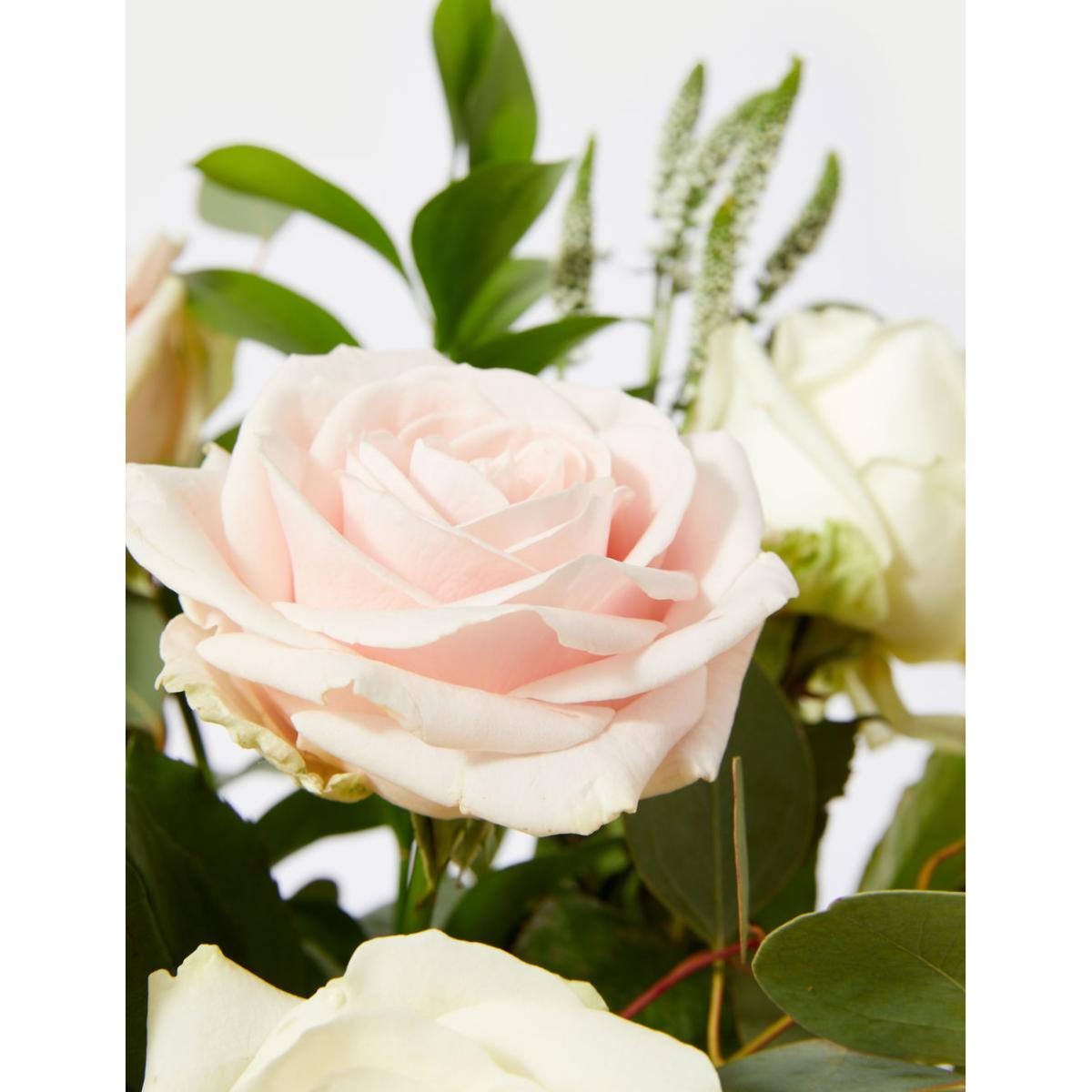 Send your love with our Thinking of You bouquet, plus some extra thoughtful treats. Your loved one will receive a stunning 20-stem arrangement filled with roses and spray veronica, beautifully framed by eucalyptus and hard ruscus foliage. They'll also find a scented Calm candle from our Apothecary range, plus a box of delicious salted caramel truffles to enjoy. Colours may vary slightly throughout the season.