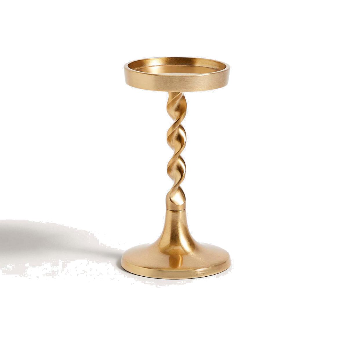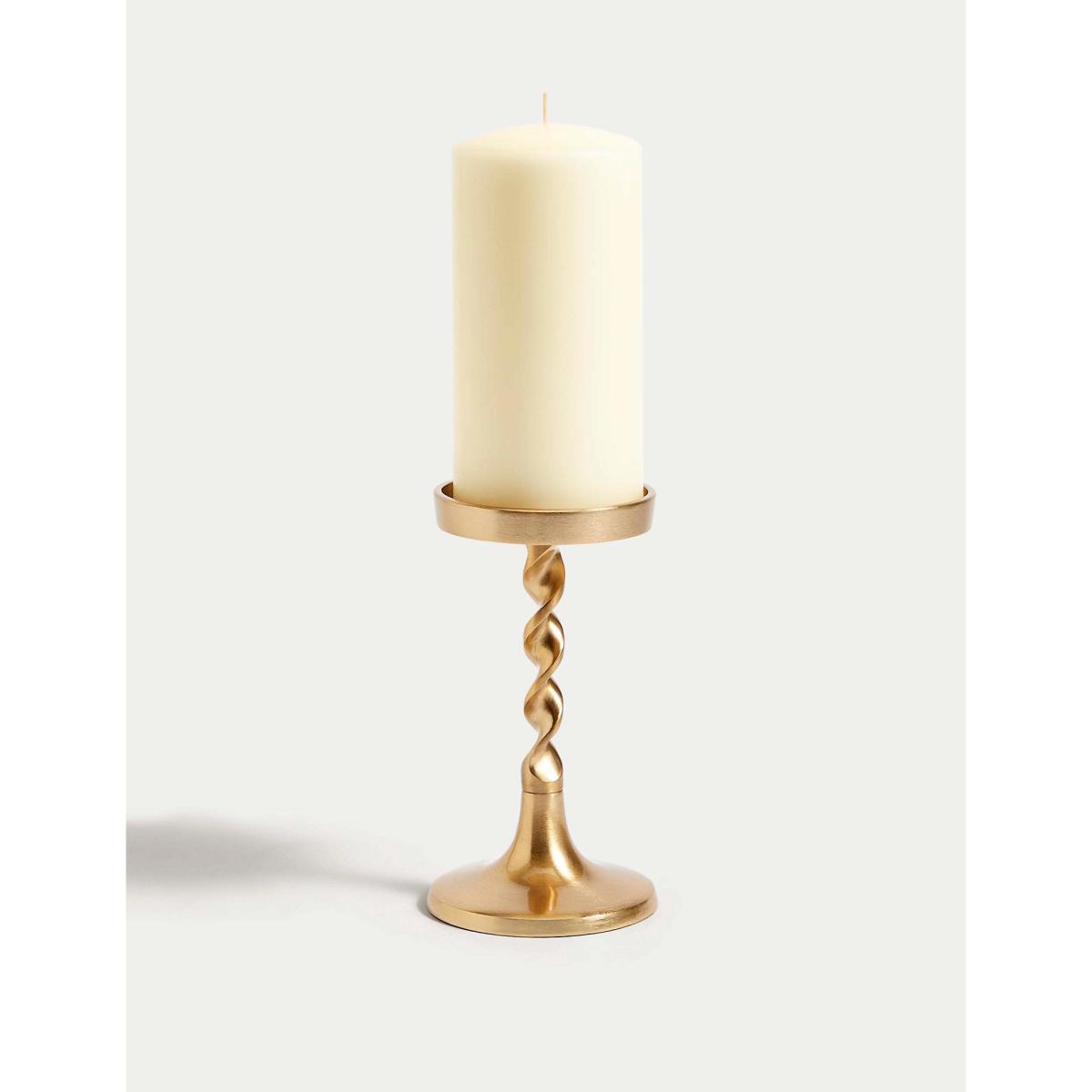 This metal candle holder will add a luxe touch to your mantelpiece or dining table. It's designed in a timeless twisted shape and will fit a pillar candle.
