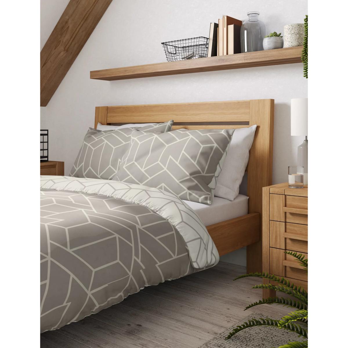 This bedding set is made from a lightweight cotton blend for a cool and comfortable night's sleep. It has a bold geometric pattern for a modern look and is available in a range of sizes. The high-quality cotton blend- which has a thread count of 180- is machine washable and tumble-drier-friendly. For minimal fuss, the set's enriched with our easycare finish, making laundry days simpler.