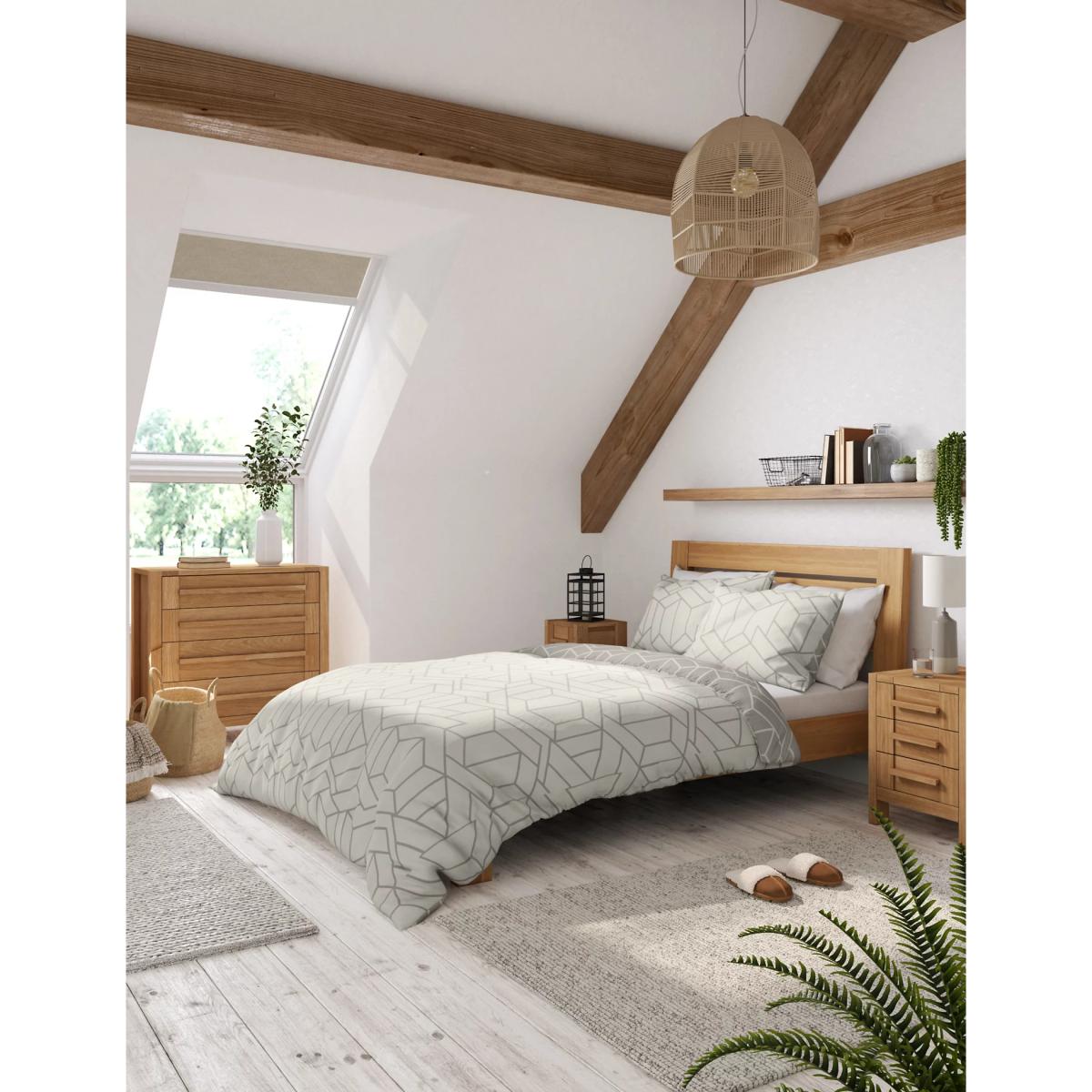 I love this bedding set for its versatile neutral colour palette and geometric pattern, which can effortlessly tie together various interior styles. It works particularly well in modern or minimalist bedrooms thanks to the clean lines and subtle shades of grey and duck egg, adding visual interest without overwhelming the space. For styling tips, consider pairing it with textured throws or cushions in darker or contrasting colours to add depth. It also pairs nicely with natural materials like wood or rattan furniture, creating a balanced and calming environment. Practical and stylish, this bedding set offers a contemporary touch that’s both functional and decorative.