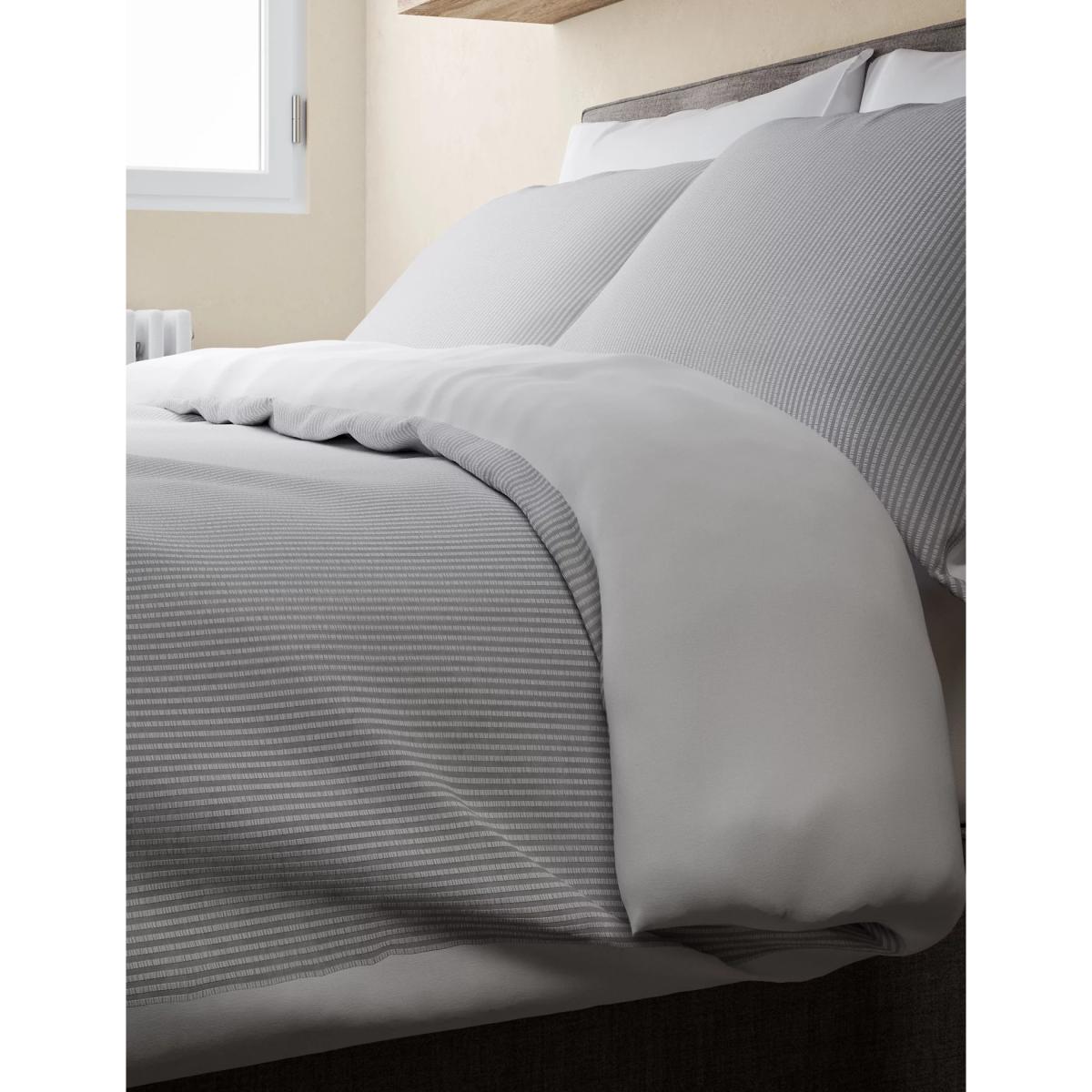 M&S Unisex Pure Cotton Striped Seersucker Bedding Set - 5FT - Light Grey Mix, Light Grey Mix