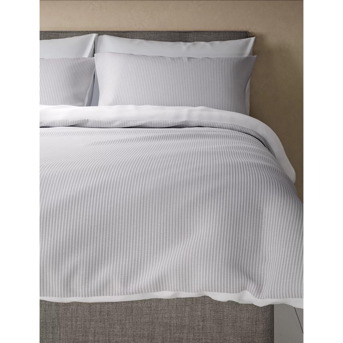 M&S Unisex Pure Cotton Striped Seersucker Bedding Set - 6FT - Light Grey Mix, Light Grey Mix