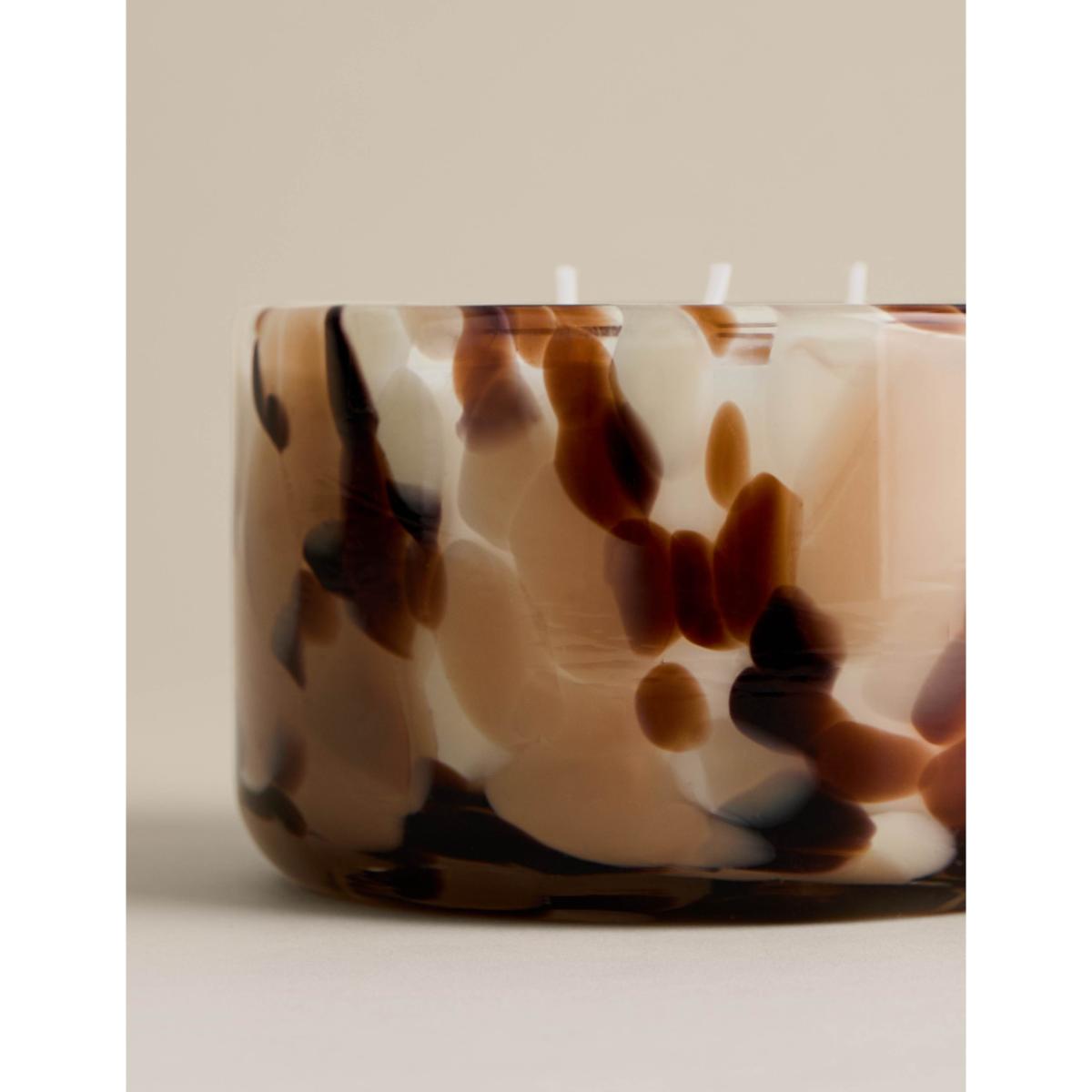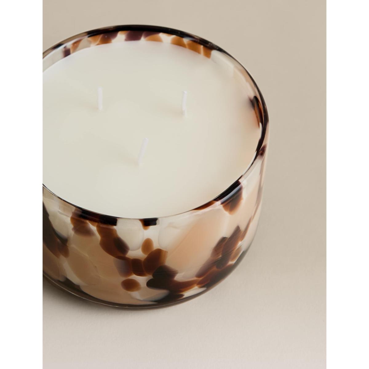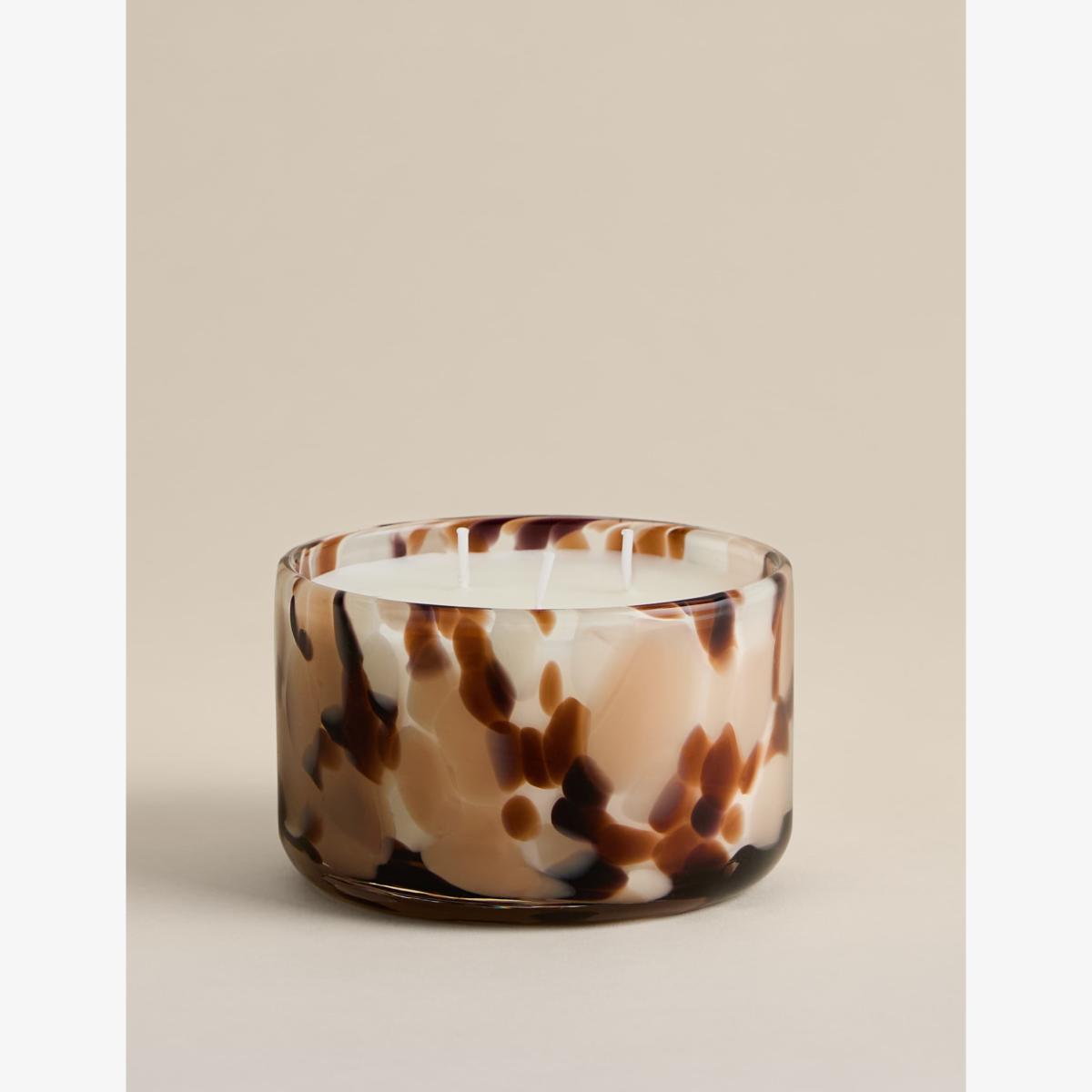 With its warm vanilla scent, this medium-sized candle will make your home smell sweet and inviting. Three wicks ensure brighter luminosity. The quality glass holder has a modern animal confetti pattern. Comes with a long burn time of up to 50 hours. This fragrance is part of the Amber family of fragrances. Amber scents are rich and warming and may contain notes such as vanilla, pepper, tonka bean and amber.