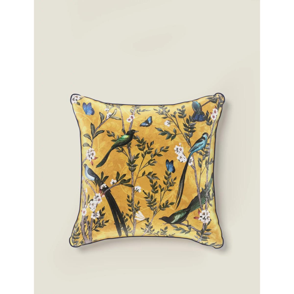 M&S Velvet Bird Print Cushion - Ochre, Ochre