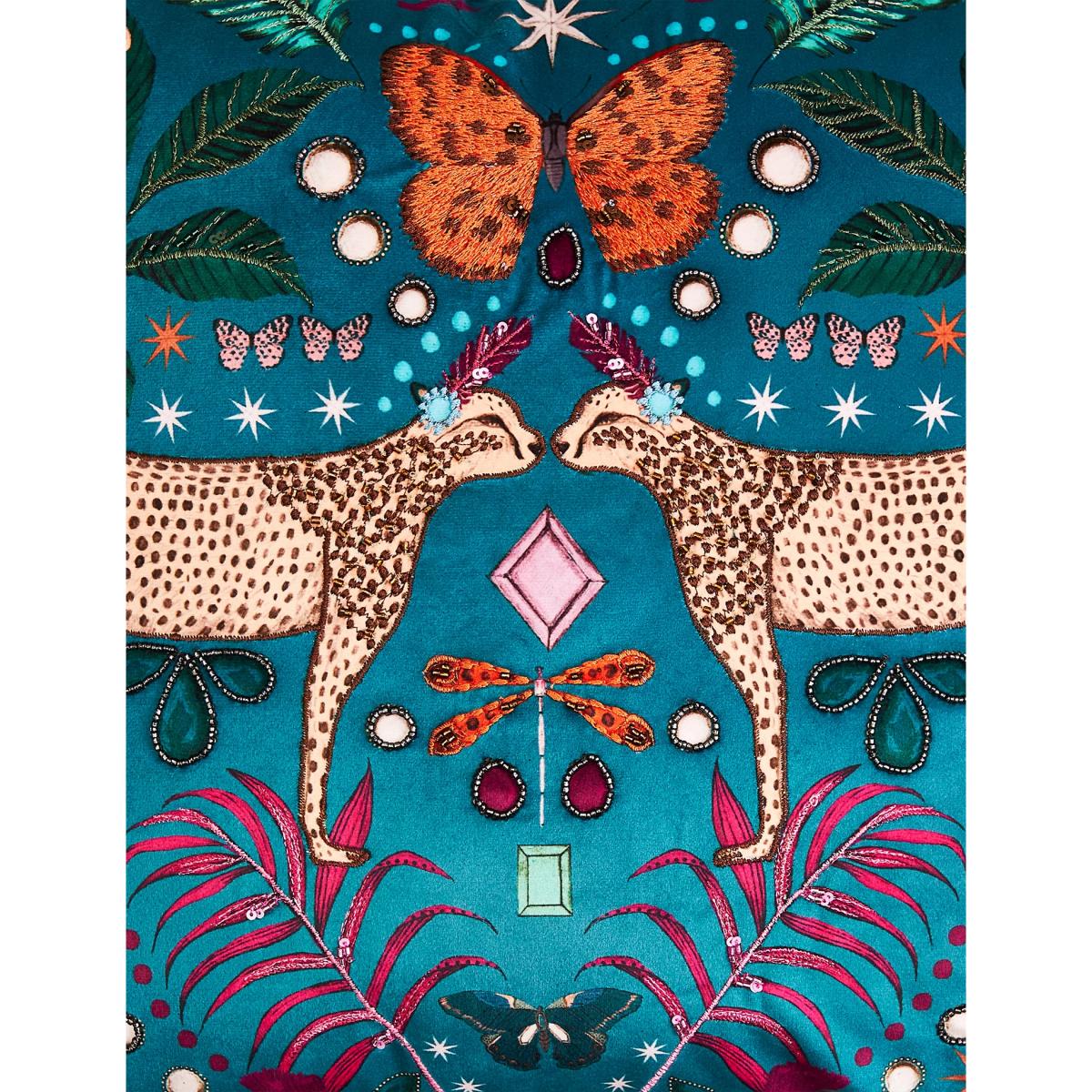M&S Velvet Cheetah Embroidered Cushion - Teal Mix, Teal Mix