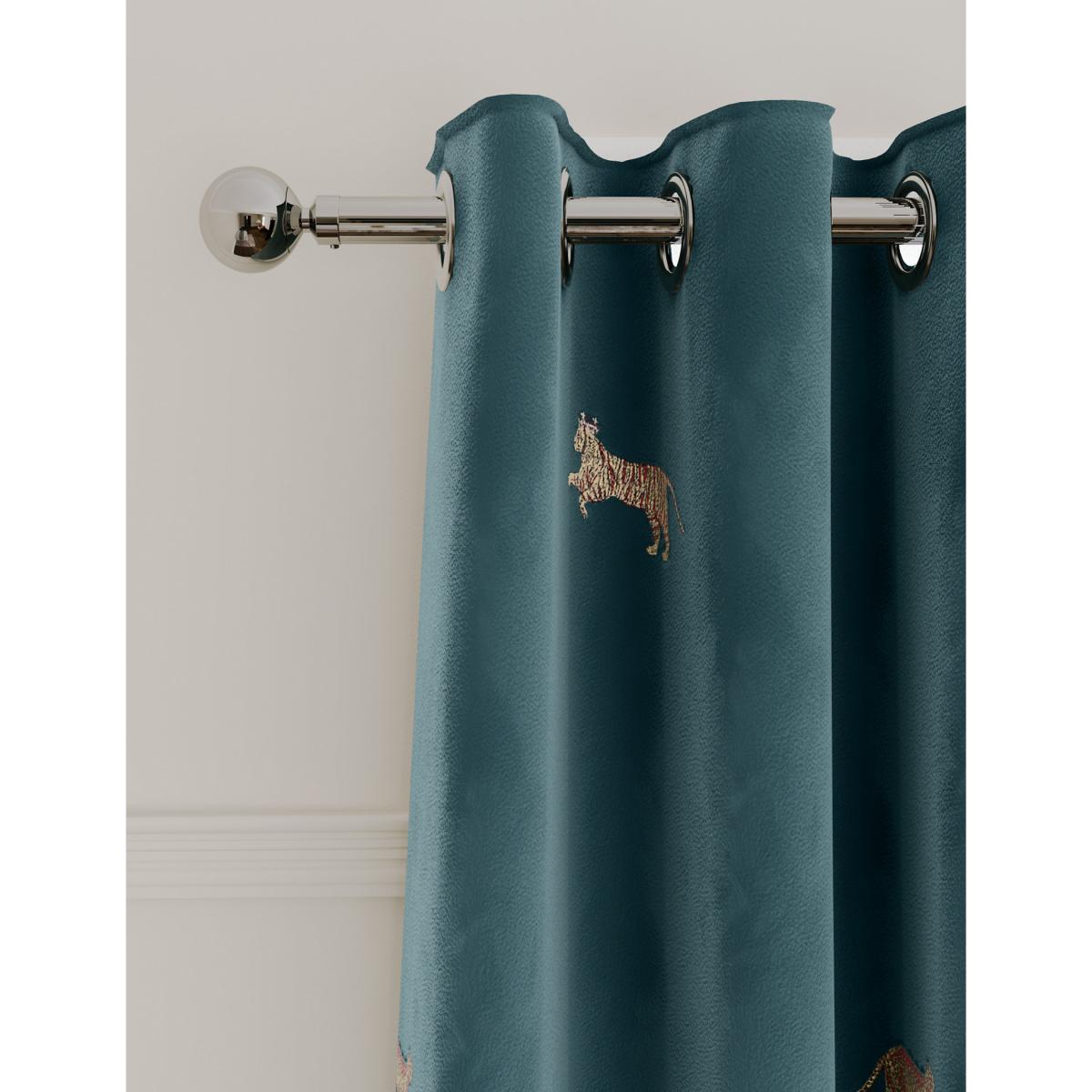 M&S Velvet Embroidered Leopard Thermal Eyelet Curtains - WDR72 - Teal, Teal